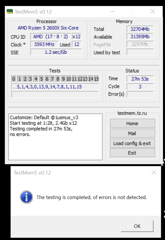 7. При желании протестировать память избыточным тестом в TM5 с конфигом 1usmus_v3 меняем количество 3-х циклов в "mt.cfg", "cycles=3" скажем на 8 или более