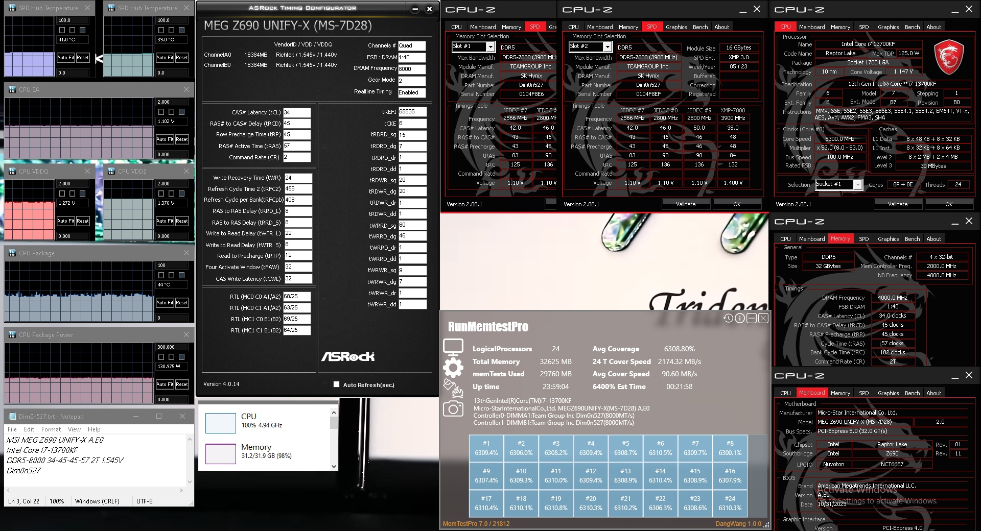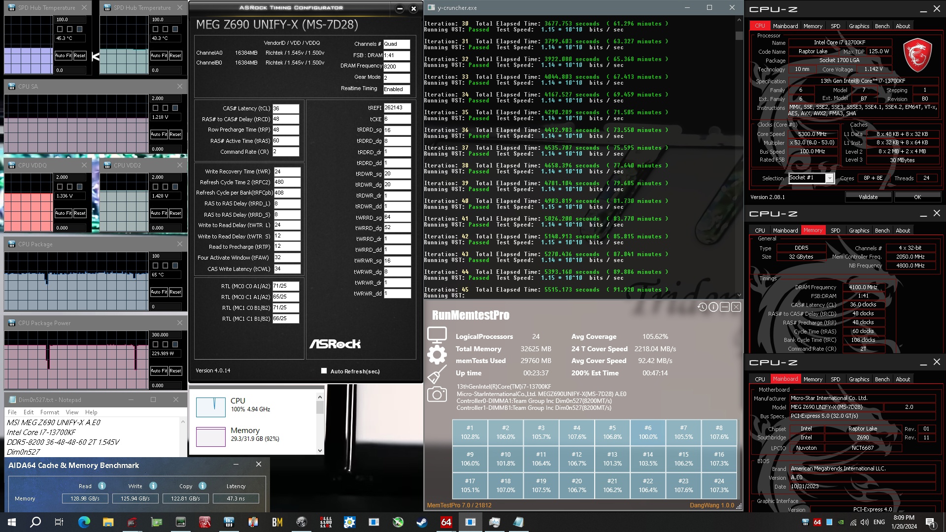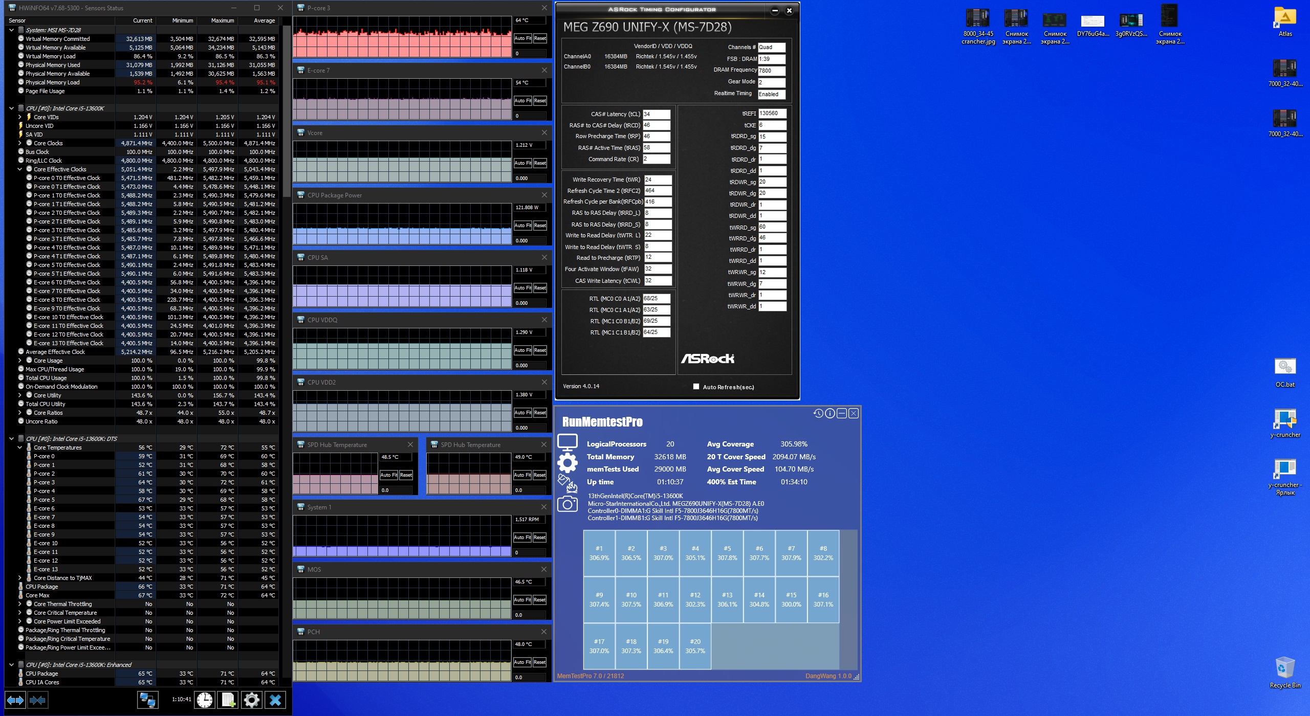 расскажешь потом, я думаю моя нокта не вывезет, сижу на 13700 пока. А я тут проверил новый биос на Юнифайку и заодно тест на нагрев провел модулей без обдува(тикриэйты стоковые):