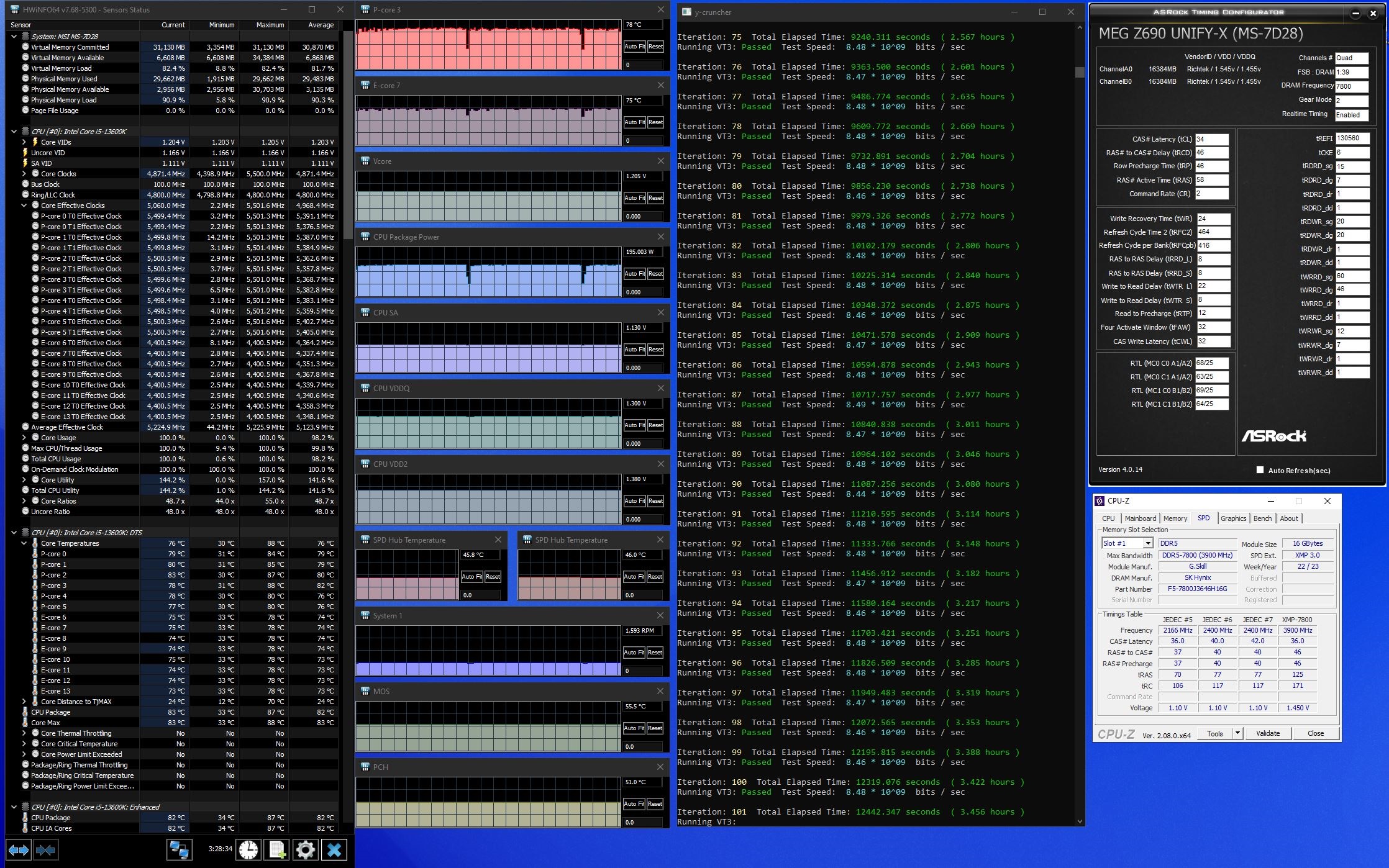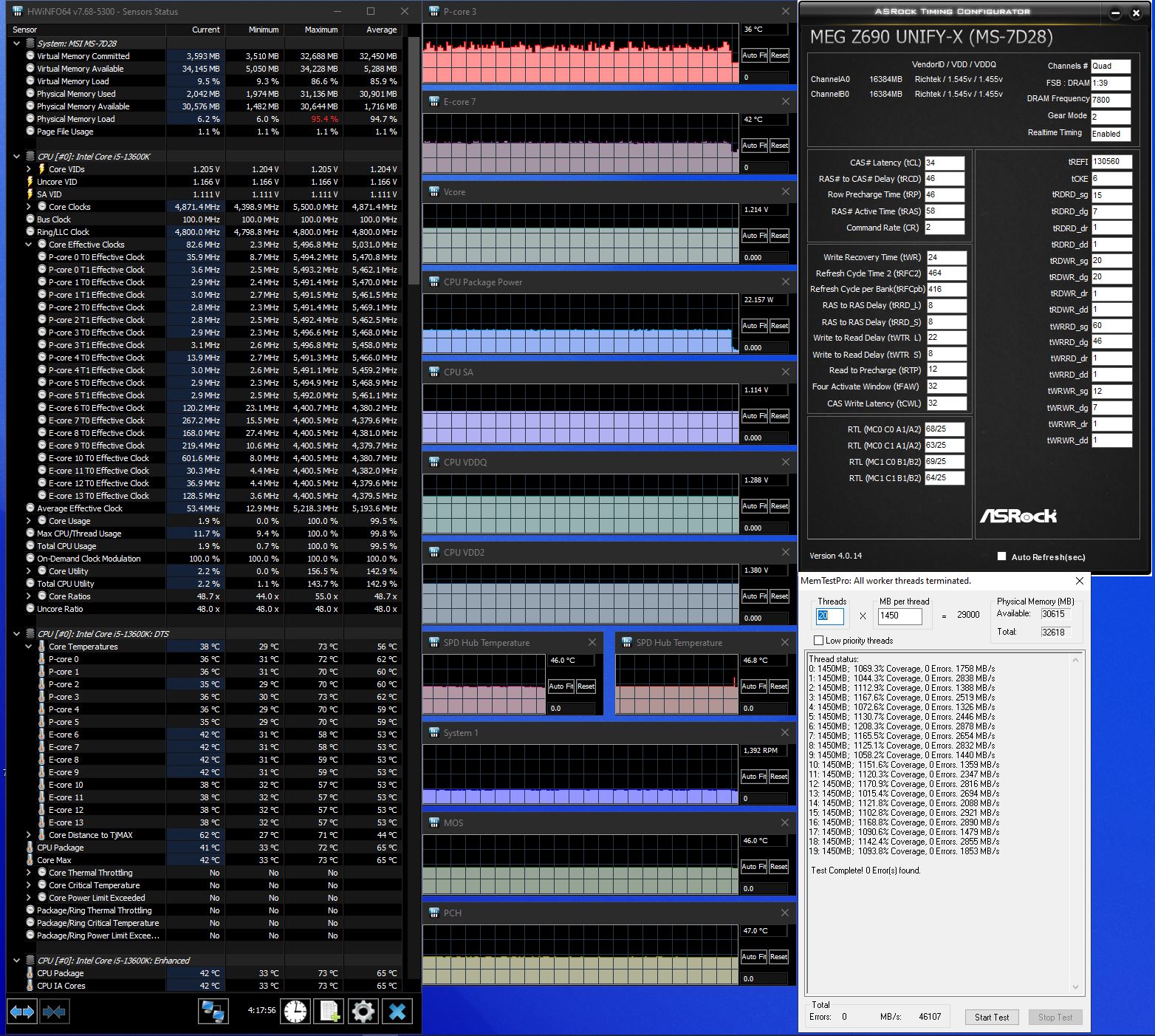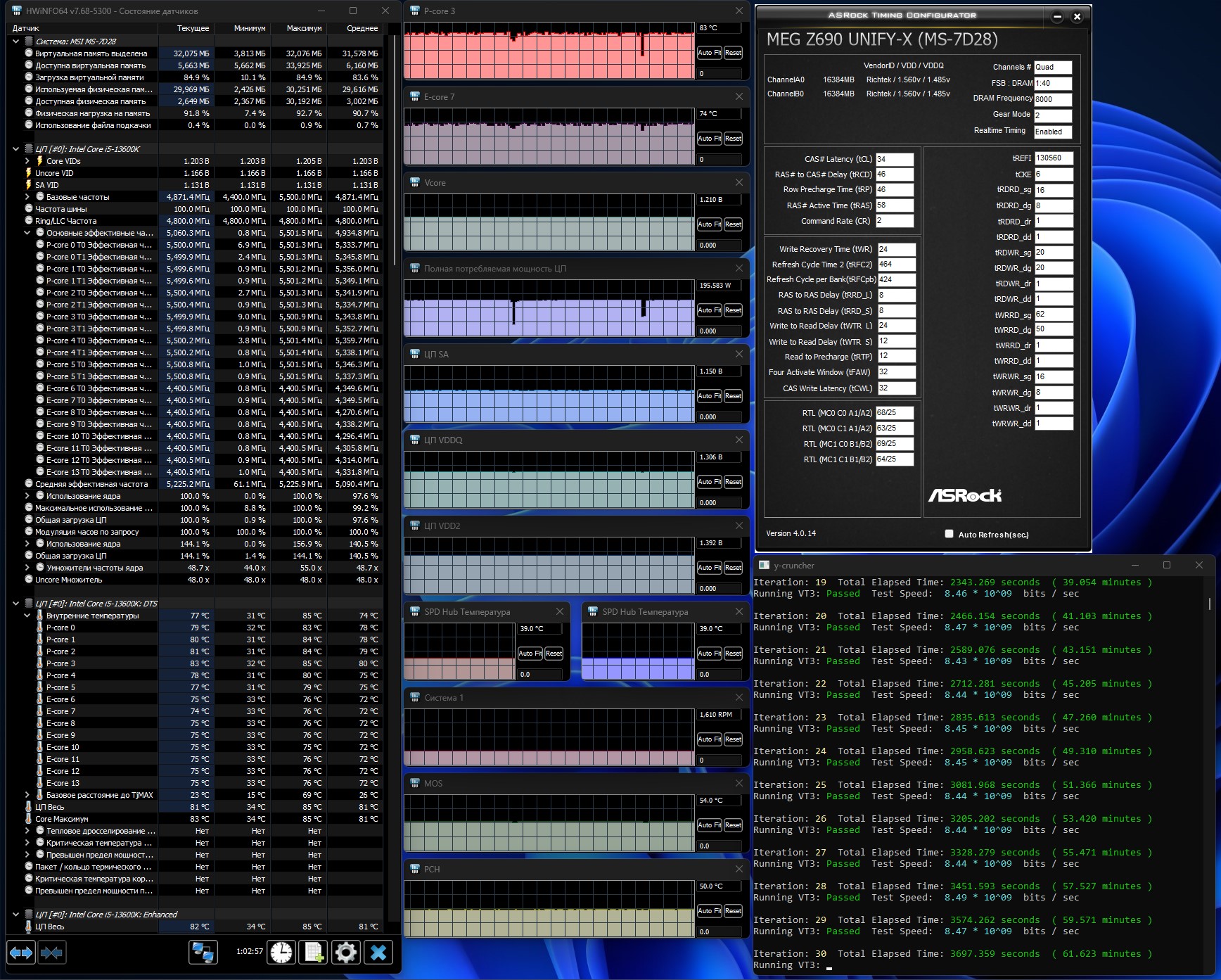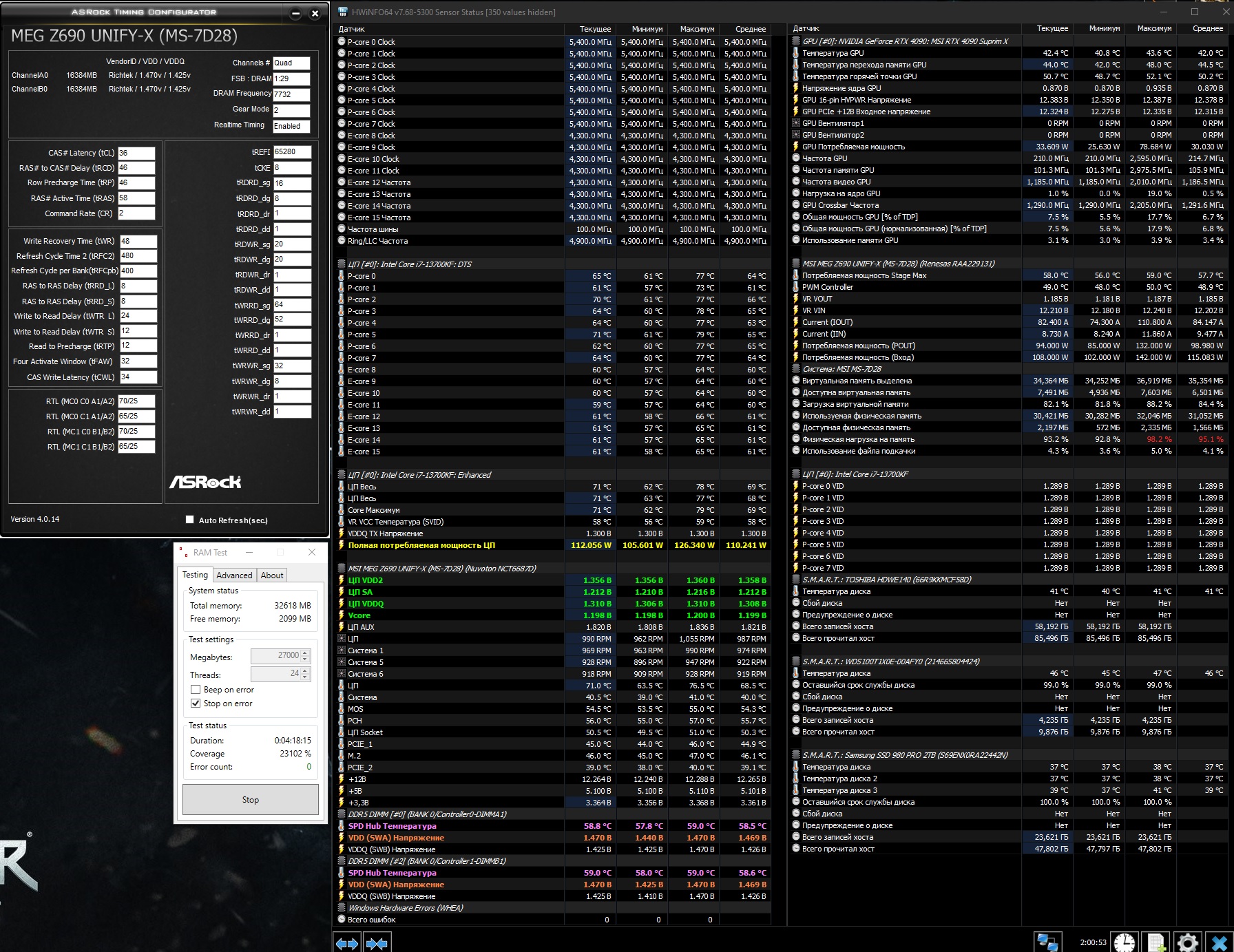 расскажешь потом, я думаю моя нокта не вывезет, сижу на 13700 пока. А я тут проверил новый биос на Юнифайку и заодно тест на нагрев провел модулей без обдува(тикриэйты стоковые):