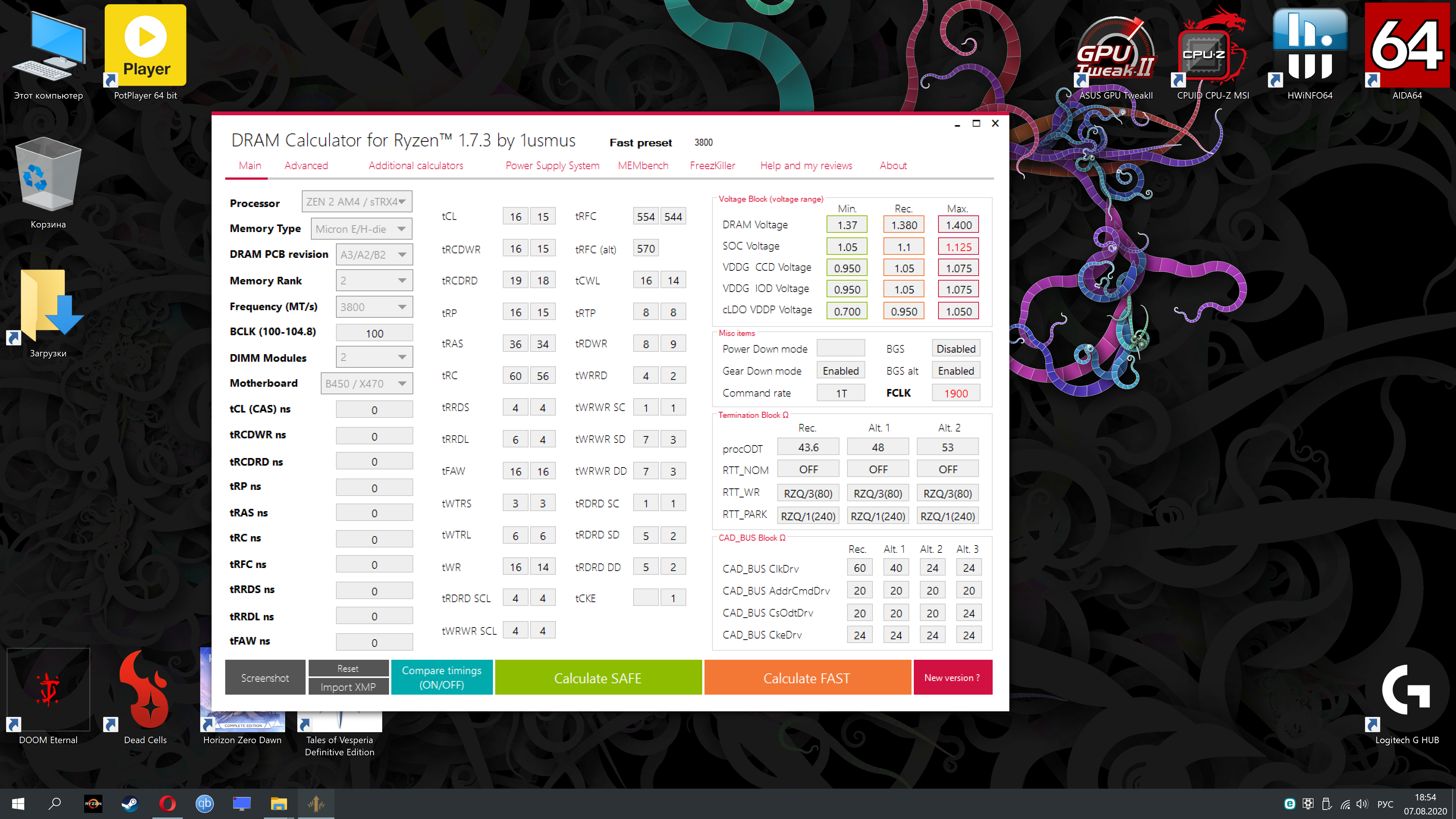 нда, хорошие плашки, теперь понятно, хотя переплата за них конская. У тебя в калькуляторе настройки неверные - memory rank 1 надо, тайминги все вместе с кадбасами можно смотреть в райзен мастере.