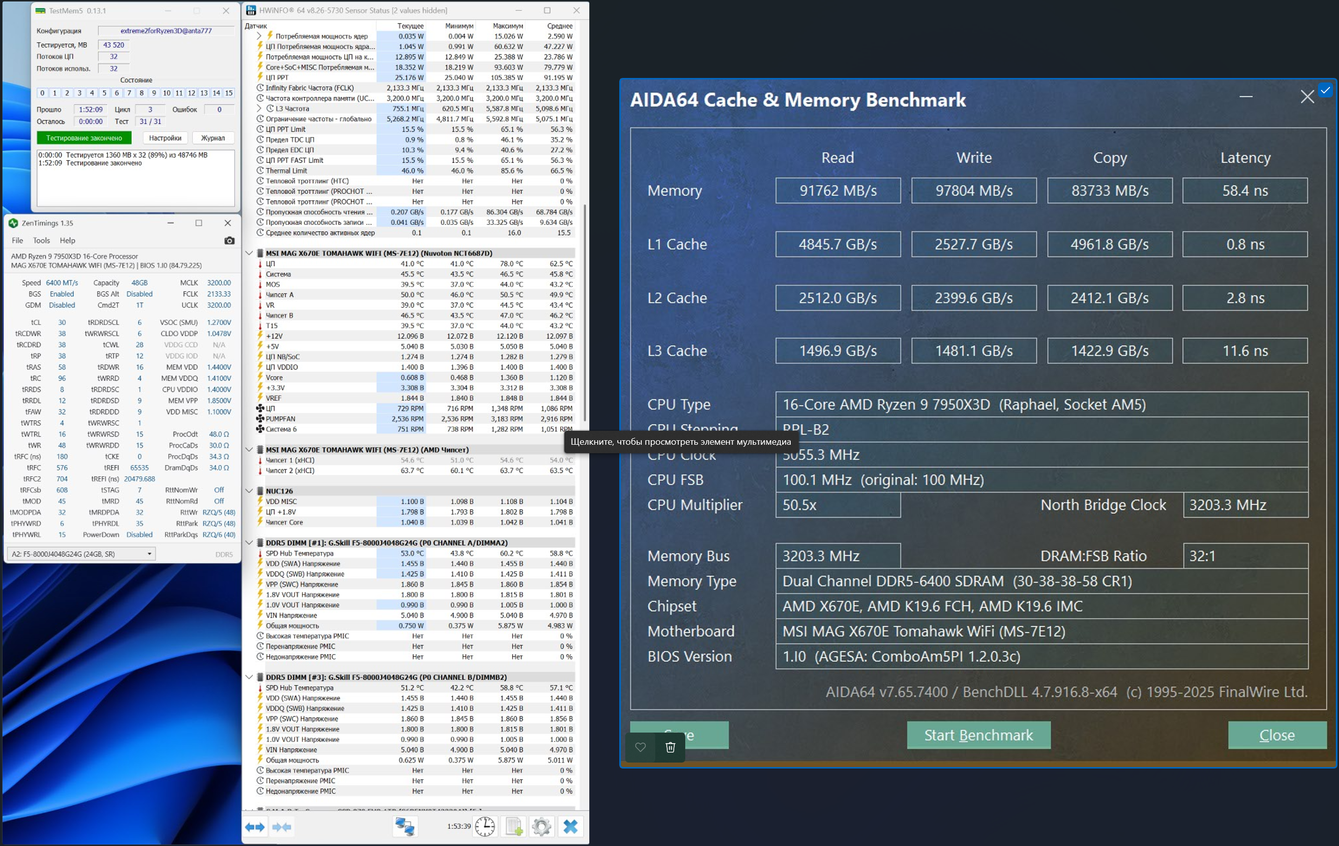 Как то так (Trfc можно спокойно ужать до 170, специально пока выставил завышенное), память тестировалась без обдува в закрытом корпусе, хотя в играх по сравнению с 6000cl28 (при существенно меньших напряжениях VDDP, VDDIO и Vsoc) разницы не увидел