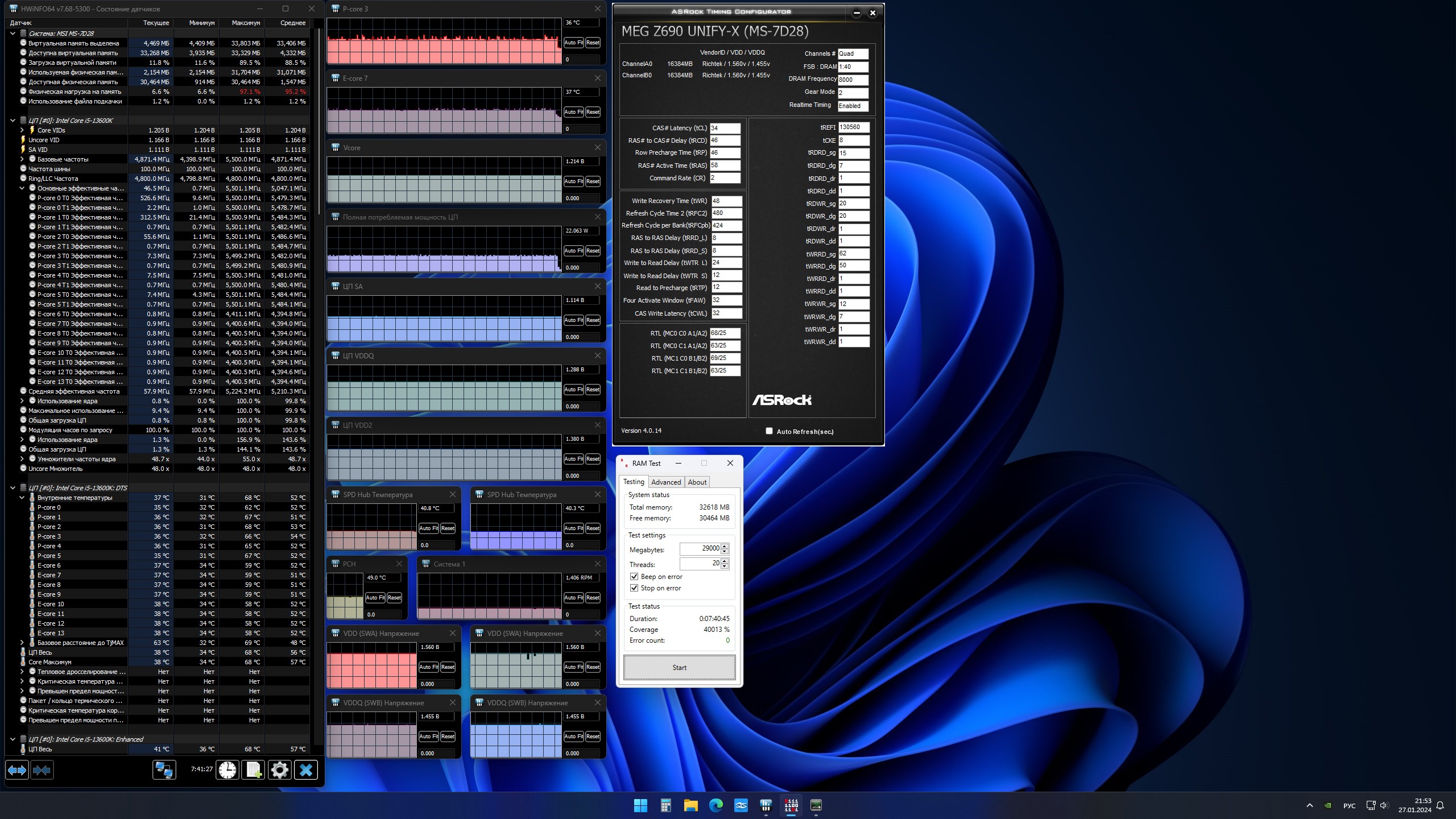 Интересно, может потому у меня 6600 предел, даже 6666 сразу валится? И потому для 6800 вообще все напряжения иные нужны. Я тут попробовал автобуст памяти, выбрал профиль материнки hynix 16G для 6800, что-то а-ля 32-44, мать погоняла, подумала, выставила 40-44--44-84 для 6800 при 1.45 на памяти и 1.38 ТХ. И оно ведь даже проходит гораздо больше циклов VT3, чем когда я подбирал... Но это будет перегрев при тесте типа FFT...