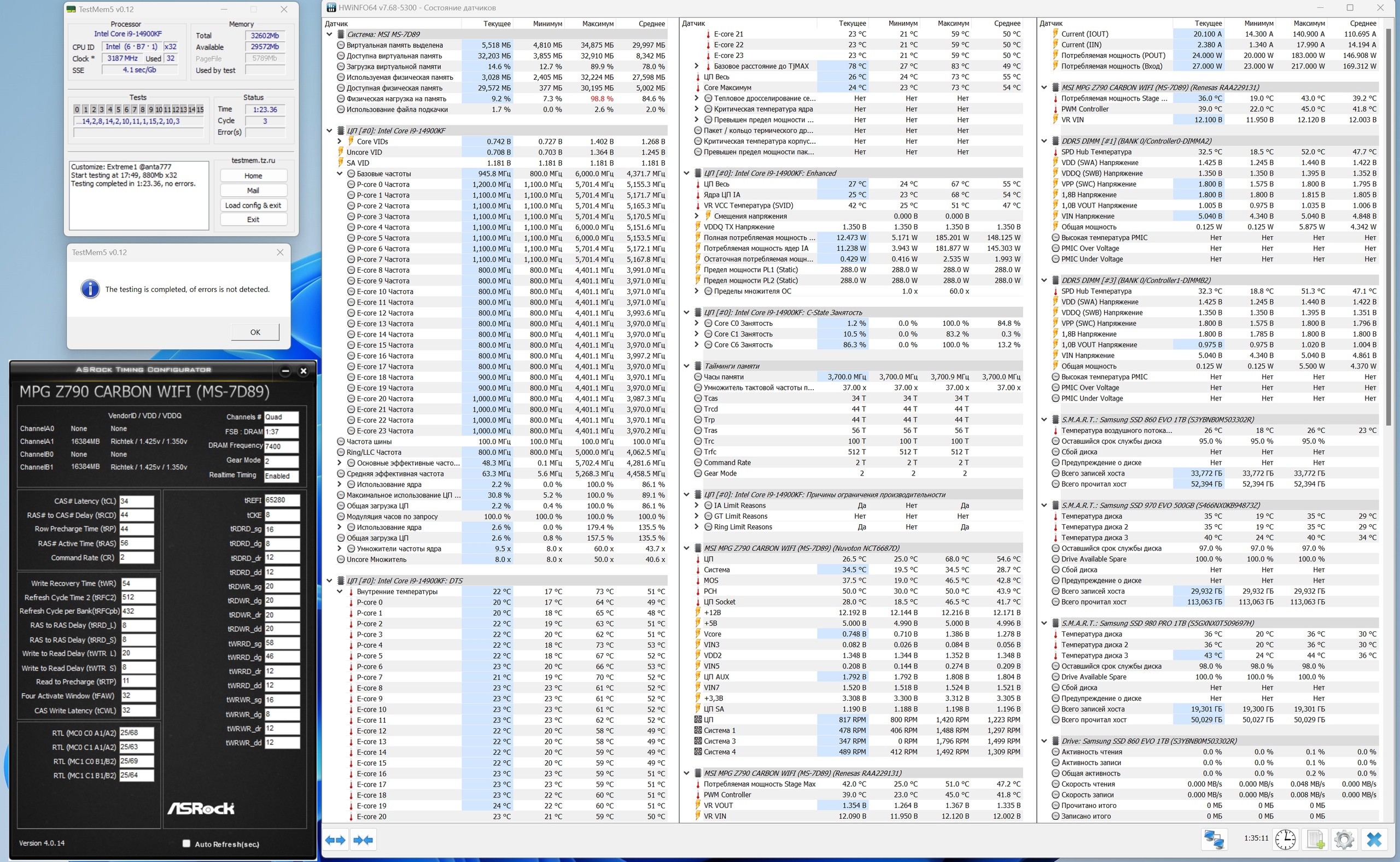 1. Сейчас поставил 1.35 в синхро. На проце так и не понял какие максимально низкие сейф напряжения поставить, если оставлю 6000 CL30, греются чуть меньше 50 градусов в таких настройках.