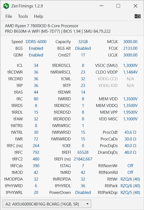 Найди напряжение сначало на которых она выше 60 греться не будет. Можешь с 1.55 начать. Сначало первички протестируй(в плане снизь), потом вторички. Ну и 6000 попробуй в 6400 превратить и fclk 2200/2166 попробуй. Если 2200 стартанет то и 2166 стабильно будет. rfc от напряжения и температуры зависит тож сильно. На DDR4 так же было и тут ничего не поменялось. Как на a-die не будет , но опустить наверное получится, чутка.