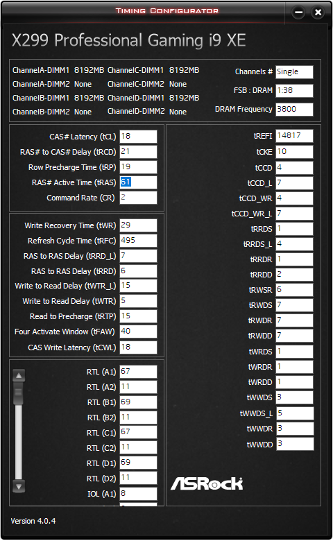 Начните с RCD, CL. Не обязательно должны быть одинаковыми, обычно CL идёт меньше чем RCD. RAS сразу пробуйте как RCD+CL+4, до этого значения от него существенная разница, дальше меньше. CWL<=CL. Допустимые значения 9,10,11,12,14,16,18,20. RP можете выставить по RCD, если пойдёт меньше - тоже неплохо, не уверен правда насчёт смысла. RTP без формул. Если не идёт вниз можно попробовать поднять чуть чуть RP. В DDR4 явно связан с WR соотношением 2 к 1 (например WR20\RTP10), физически хранится одно значения и в зависимости от операции интерпретируется. Скрутите FAW до 16(так и оставьте если работает). С таким FAW скручивайте RRD(оба, L обычно больше чем S), возможно поедут на 4 оба. Если до 4 не удалось спустить поднимите FAW до уровня RRDL*4 и попробуйте ещё, хотя это скорее всего уже почти предел. Обычно L>=S. L - SG(Same Group). S - DG(Different Group) Напр. RRD_L>=RRD_S. CKE=5 СCDL>=4 RDRD_DD и прочие подобные можно проигнорировать если у вас нет двух планок на один канал (4 планки). DD-Different Dimm. Тоже самое с DR-Different Rank если у вас одноранговая память. RDWR_SG(DG) и подобные сочетания скручивайте до минимальных рабочих, потом накиньте сверху +2. Как уже отметил обычно SG>=DG. WTR не трогайте он сам спустится когда будете скидывать WRRD_SG(DG) и прочие подобные. Если сам меньше не стал тогда руками скидывать. WR снижать через WRPRE если есть. Если нет или не снижает WR, То скрутите его скажем до 12 или +4 от рабочего, потом дожмёте если не лень будет. RFC явных формул нет, крутить после всего списка сверху. Не пытайтесь найти его минимальное значение если не хотите чтобы память начинала сыпать ошибками от любого чиха. найдите пограничное со стабильностью значение и накиньте сверху 20 или сразу 40. Может реагировать на RAS+RP, RRD, FAW, причём в обе стороны (то есть может "сломаться" если задрать названные), а может и не реагировать... REFi больше лучше. Связан с RFC. REFI сколько память "работает" - RFC сколько "отдыхает". Оба тайминга лучше не пытаться найти предельное значение.Заметно реагируют на температуру. Многие тайминги отзываются и на температуру и на напряжение. Поскольку напряжение может как позволить снизить тайминг, так и увеличить температуру, то середину можно искать очень долго, поэтому лучше бы вовремя остановится. Тестируйте тщательно с перезагрузками, сном, холодным стартом. RTL и IOL вам кто-то другой пусть советует как настраивать, от них у меня голова болеть начинает...