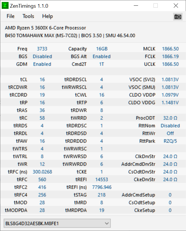 tRFC вполне может быть 544 и на 3733 и на 3800