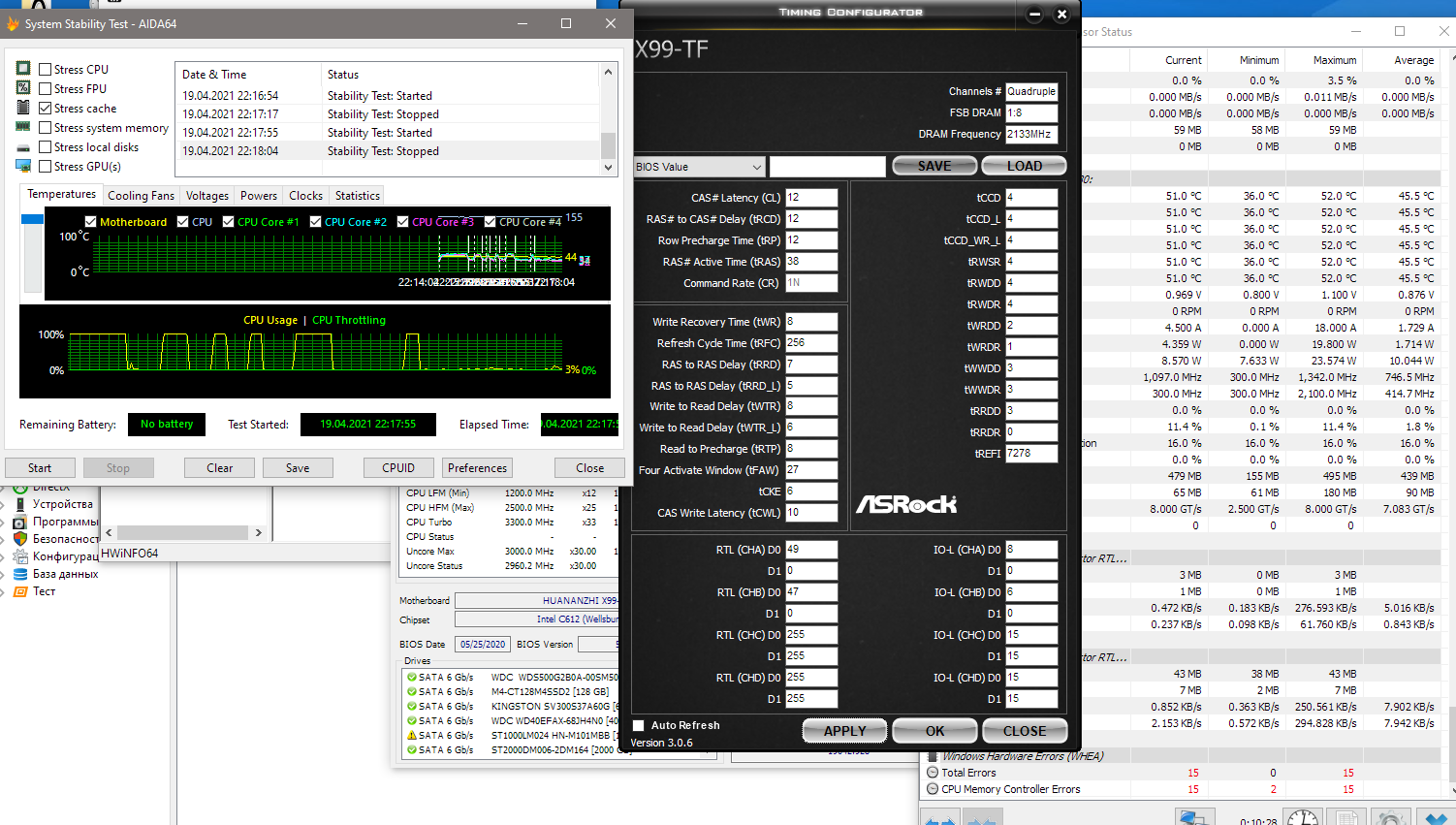 Мать huananzhi x99-T8. Проц 2678 v3. Память Samsung 8Gb*8 = 64 Gb, серверная c ECC 2R*4 PC3L-10600R-09-11-E2-P2, 1333.