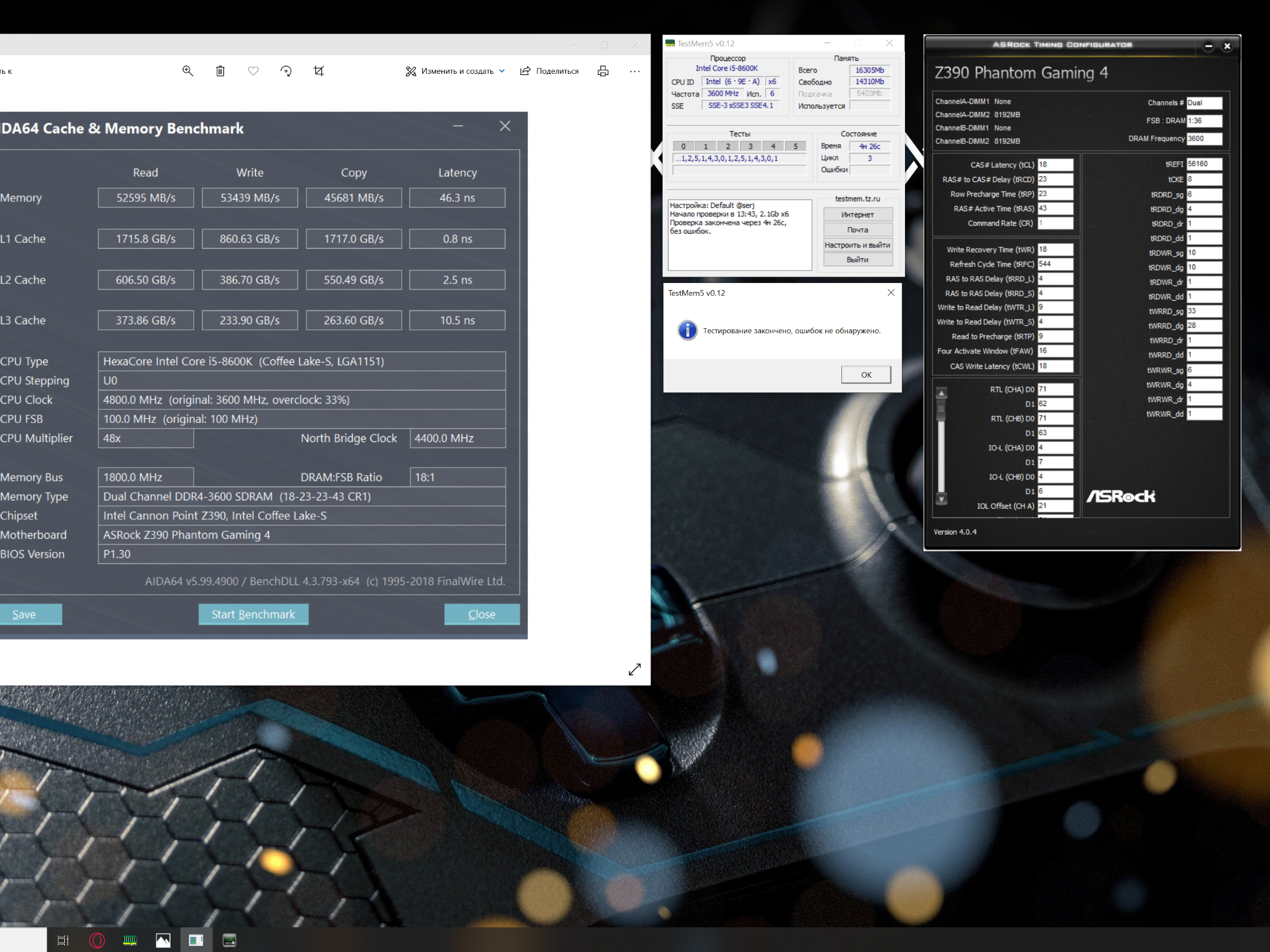 Вот и я добрался до разгона памяти. Плашки балистики AES 3000mhz 4*8Gb. Пока что завёл на 3600mhz. Нужно править тайминги. Иногда заводится на 3733, но не стабильна.