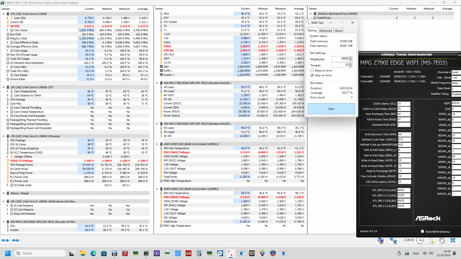 Спасибо. Но не помогло. Запустилась на 7200, aida тест памяти 3 минуты и ошибка, плата постоянно меняла напряжение ddr vdd и ddr vddq с 1.395 до 1.41