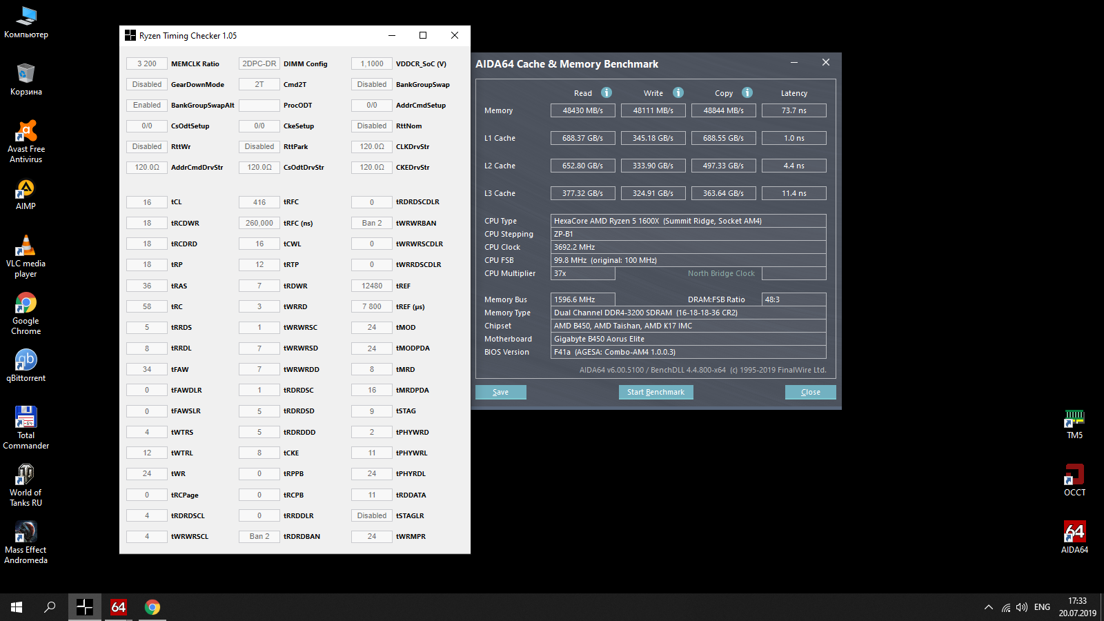 3200 завелась с таймингами 16-18-18-18-36-58. Но в ТМ5 сразу сыпят ошибки)) Куда копать?