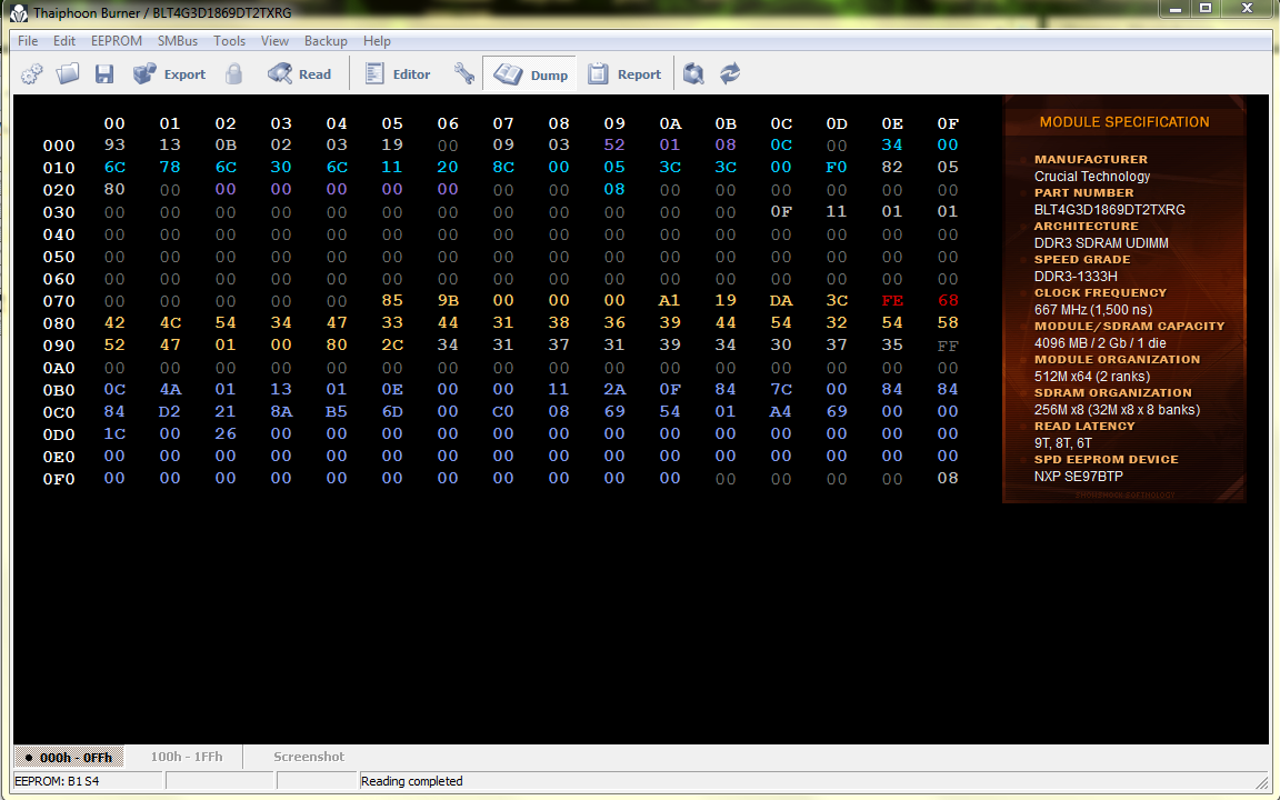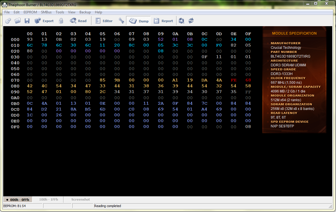Barlok88, Программа SPDTool заброшена 10 лет назад. Её автор давно сконцентрировался на разработке GPU-Z. Последний из поддерживаемых SPDTool 0.63 SMBus-контроллеров тот, что реализован в хабе Intel ICH10 (чипсет X58). Несмотря на то, что программа умеет считывать содержимое SPD модулей DDR3 систем на базе ICH10, редактирование дампов возможно только через HEX-редактор. Что касается Thaiphoon Burner, перепрошивка SPD ППЗУ возможна только в зарегистрированной версии. Купон-код SuperB даёт скидку 25%. Более того, обладатель лицензии может получить ещё одну бесплатно. Кстати, проверить наличие защиты SPD 2-Кбит ППЗУ можно в Тайфуне через Data Protection Test (меню EEPROM).