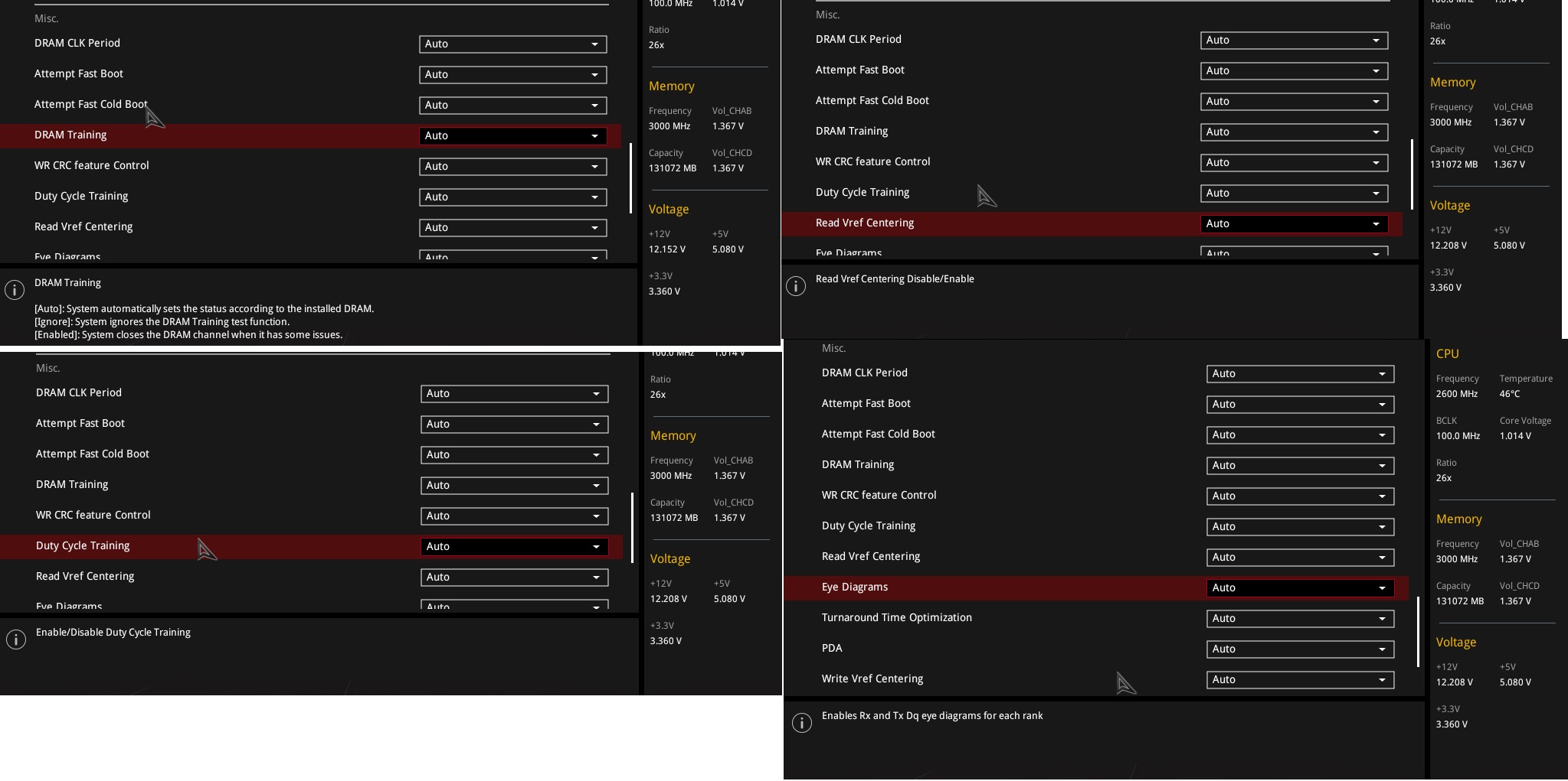 AMT - Asus MemTweakit Asus MemTweakIt 2.02.44 При настройке памяти в BIOS ставим ОБЯЗАТЕЛЬНО MRC Fast boot=disable (включаем при этом режим тонкой тренировки, если же выставим enable, то включаем режим грубой тренировки). Оптимально при разгоне памяти использовать в биосе множитель памяти 133, а не авто или 100, что даст возможность создать комфортные условия для контроллера памяти в процессоре и снизить напряжения ио и са ! Недаром в Jedec шаг между спидбинами именно 133, а не 100! Для плат с Alder Lake напряжения VDD и VDDQ на память могут отличаться не больше, чем на 300 мВ. Для плат на основе логики z690 и b660: VDD>VDDQ VDDQ>=VDD-300mV(0.3V) Лучше на VDDQ не превышать 1.25V. Вполне возможно 1.30V. MSI дает зазор до 1.40V. Для таймингов должно выполняться требование: _dr=_dd