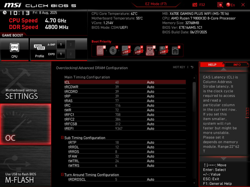 Вопрос новичка, а как на msi x670e gaming plus wifi можно настроить тайминги? Везде стоит режим "авто" и никак не изменить их.