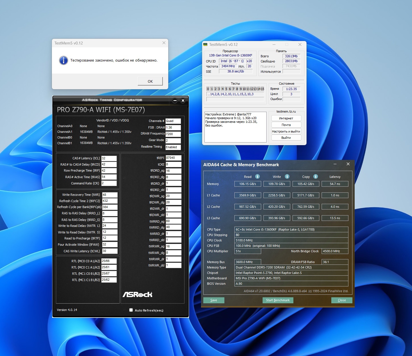 Не так давно приобрёл kingbank 7200 и совершенно случайно наткнулся на один из вариантов настройки для этой памяти и к моему удивлению это даже поехало, вроде как, но смущает напряжение на память 1.54v.