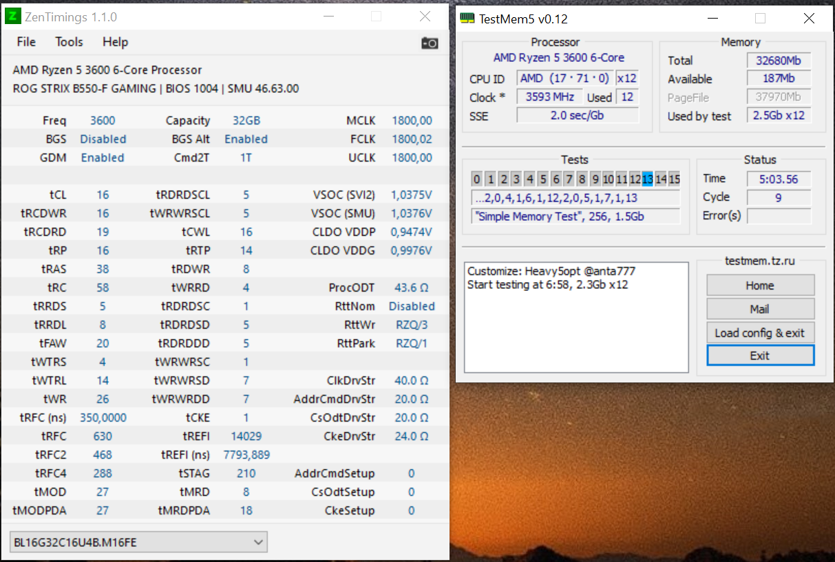 Shaman4ik79 а чего частота 3600? zen2 3733-3800 на микронах едет без проблем. VSOC=1.10, tRCDRD=20 поставь и сможешь повысить частоту (CLDO VDDP установил на 0,9V?). tRFC (при 3600 = 544, при 3666=552, при 3733=560, при 3800=568) у тебя самый простой вариант разгона (zen2+MicronrevE), всё идёт по шаблону, за пару часов можно всё настроить. ну и хватит уже этот хэви опт использовать, короткий тест usmusV3 и финальный тест после всех корректировок extreme (хотя некоторые без него гонят)