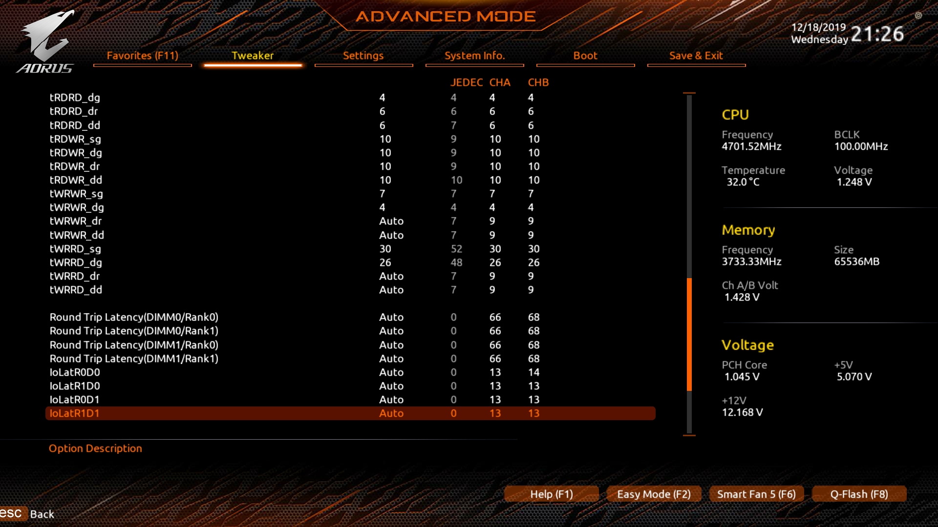 Для гиги, к сожалению, не лучший вариант. Адекватного поведения платы можно ожидать только при всех фиксированный предназначенных для настройки таймингов (кроме WTR_L/S). Очень важно не забыть про RC и ССD, которые не отображаются в асрок конфигураторе и потому многими игнорируются. Лучше подбирать сначала весь пресет и пробовать его целиком, после чего уже пробовать снижать первички с пересчетом того, что связано с ними формулами. И да, memory enhancement ставить "normal"!