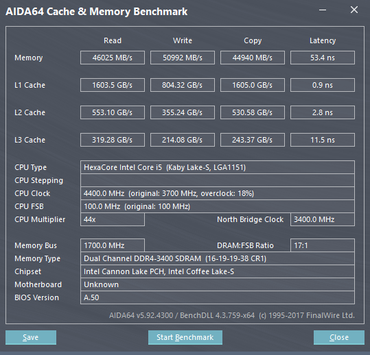 CPU Name: Intel® Core™ i7-7740K CPU @ 4.30GHz Motherboard Model: MSI X299 GAMING PRO CARBON AC (MS-7A95) Total Size: 8192 MB Type: Single Channel (64 bit) DDR4-SDRAM Frequency: 2750 MHz - Ratio 1:31 Timings: 21-31-31-63-2 (tCAS-tRC-tRP-tRAS-tCR) Slot #1 Module: G.Skill 8192 MB (DDR4-2137) - XMP 2.0 - P/N: F4-3200C14-8GVR
