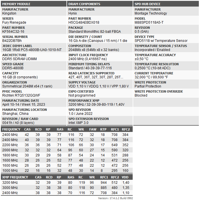 Привет, найти мой пост на стр. 622-623 там есть скрины памяти adata 32gb 6000cl28, чипы m-die гнать вверх по частоте +200 выходит дорого по напряжению, в районе 1.47v -1.49v на память, ещё и тайминги сьедут с 36 на 38, решил оставить так и ужать, вполне приемлимо. Понять какие чипы можно через тайминг trfc на m-die ниже 480(160ns) не стартует, а если 400 и ниже то это a-die, мне так посоветовали проверять.
