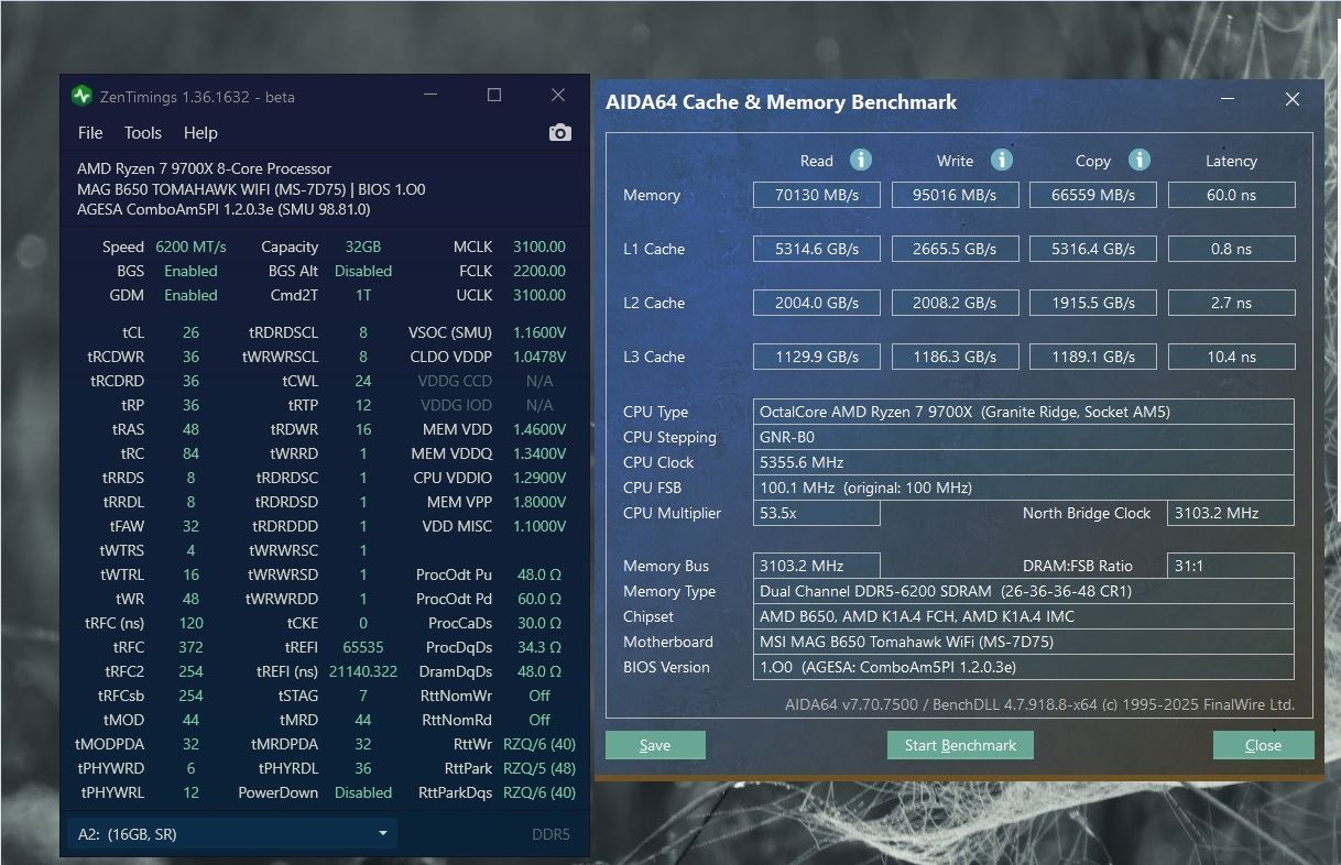 KingBank Оперативная память DDR5 White Star Blade RGB Heatsink KFRW Hynix A-die 6000 MHz /CL26/ 2x16 ГБ (K5.01.FLA5ED9503) кто-то разгонял данную память? Есть может уже готовый набор таймингов под 6000-6400? У меня вот так вышло. Хотелось бы 6400 или 6200 попробовать с приличными таймингами или что-то тут еще можно ужать? #77