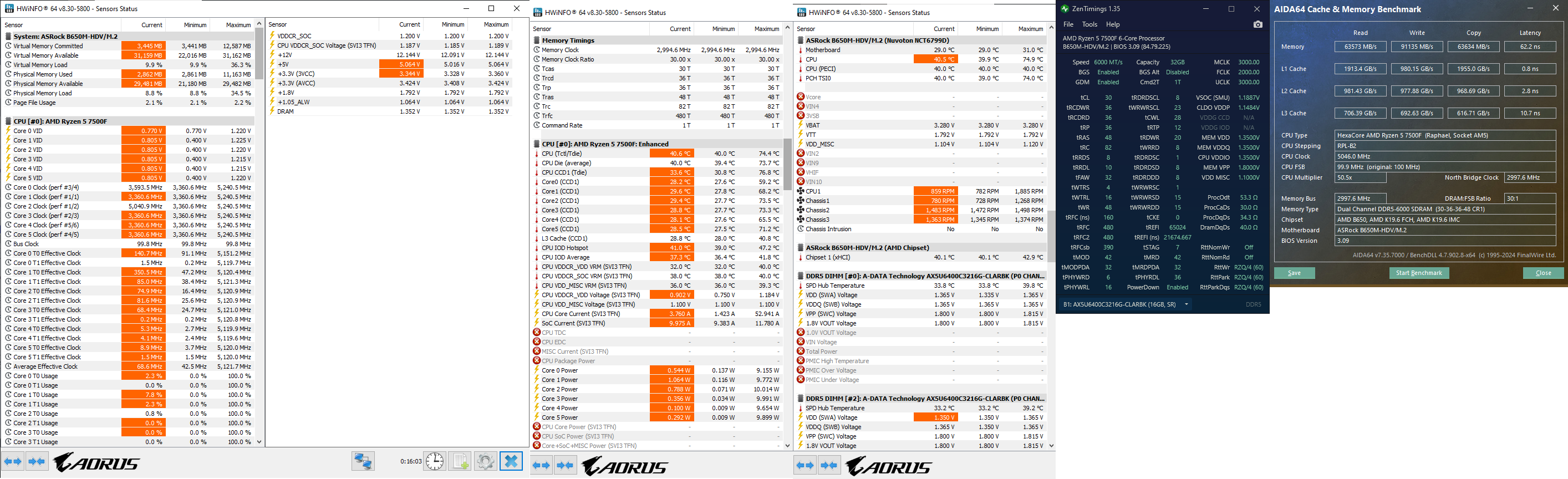 Подскажите, пожалуйста, в первые настроил биос, нужно ли что-то поправить? Изменил, vdd_soc с 1.250v на 1.200v, так же изменил vddio, vdd, vddq, с 1.400v, на 1.350v. Настроил Curve Optimizer -30 на все ядра, Max CPU Boost Clock Override(+) 200mhz. Стресс тест в aida64, testmem5 Anta777 Extreme, cinebench r24 и OCCT процессор и оперативная память проходят без ошибок. Показатели в HWinfo после стресс теста в cinebench r24. И еще почему-то напряжение на оперативной памяти vdd, vddq, vpp в HWinfo чуть выше чем выставлено в bios. Так и должно быть или нужно что-то менять в bios? И насколько безопасна эта настройка? Не выйдет ли из строя процессор, материнская плата или оперативная память?