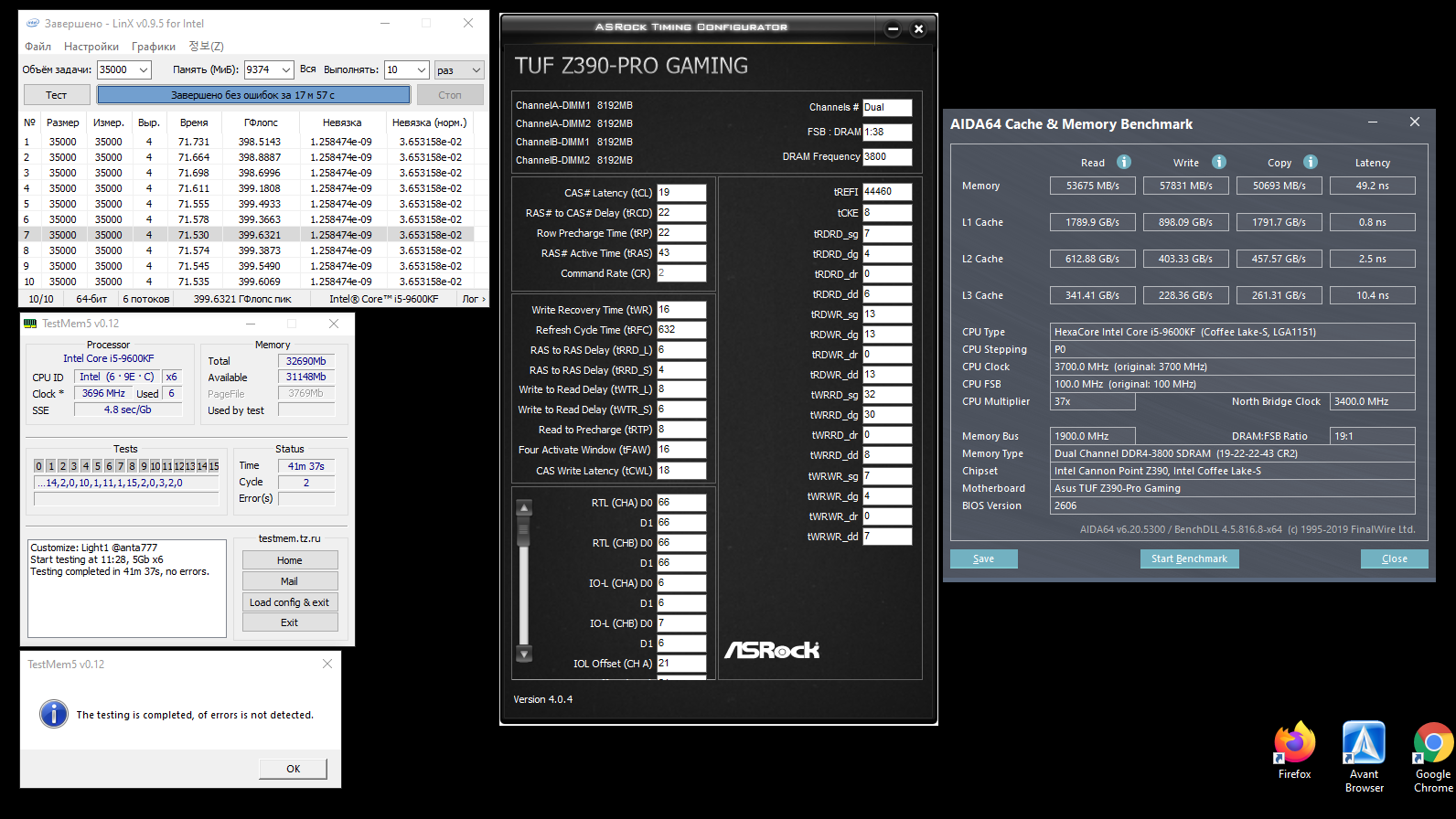 Доброй день. Если несложно, проверьте корректность таймингов. Разгонял по разным инструкциям, позже попал на этот форум.Память A-Data XPG SPECTRIX D41 RGB два комплекта. Материнская плата ASUS TUF Z390-PRO GAMING, процессор i5-9600KF. В процессе разгона, после частоты памяти выше 3500, тренировка памяти корретно не проходит. В итоге на частоте 3800 правил RTL блок по инструкции из шапки темы.