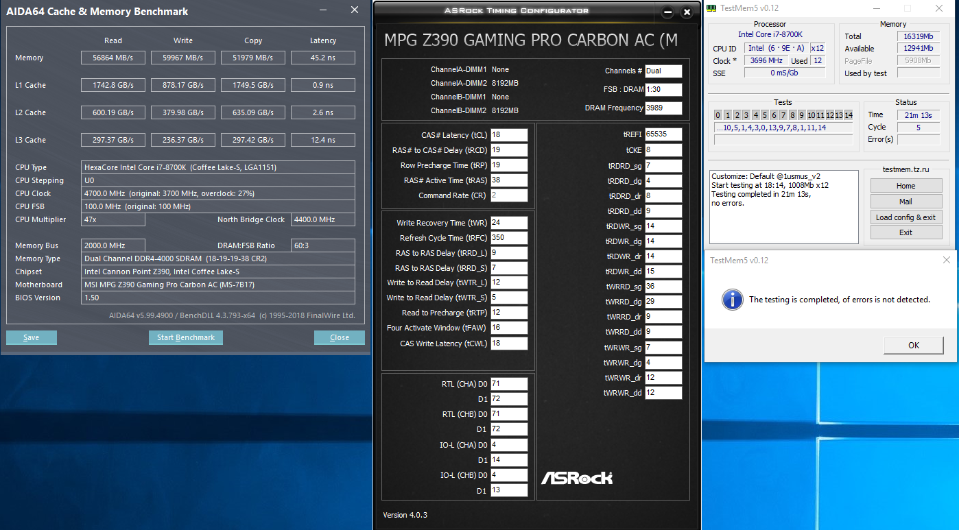 Я новичок по разгону памяти, нашел пока нормальную частоту 4000 при таймингах 18-19-19-38, напруга 1.35. Проходит testmem5 с дефолтным скриптом и 1usmus без ошибок, linxv тоже, на других частотах с разными таймингами валят ошибки. Хочу выжать больше производительности с плашек, может кто посоветует конфиг для такого вида памяти? Или просто можно что-то улучшить?