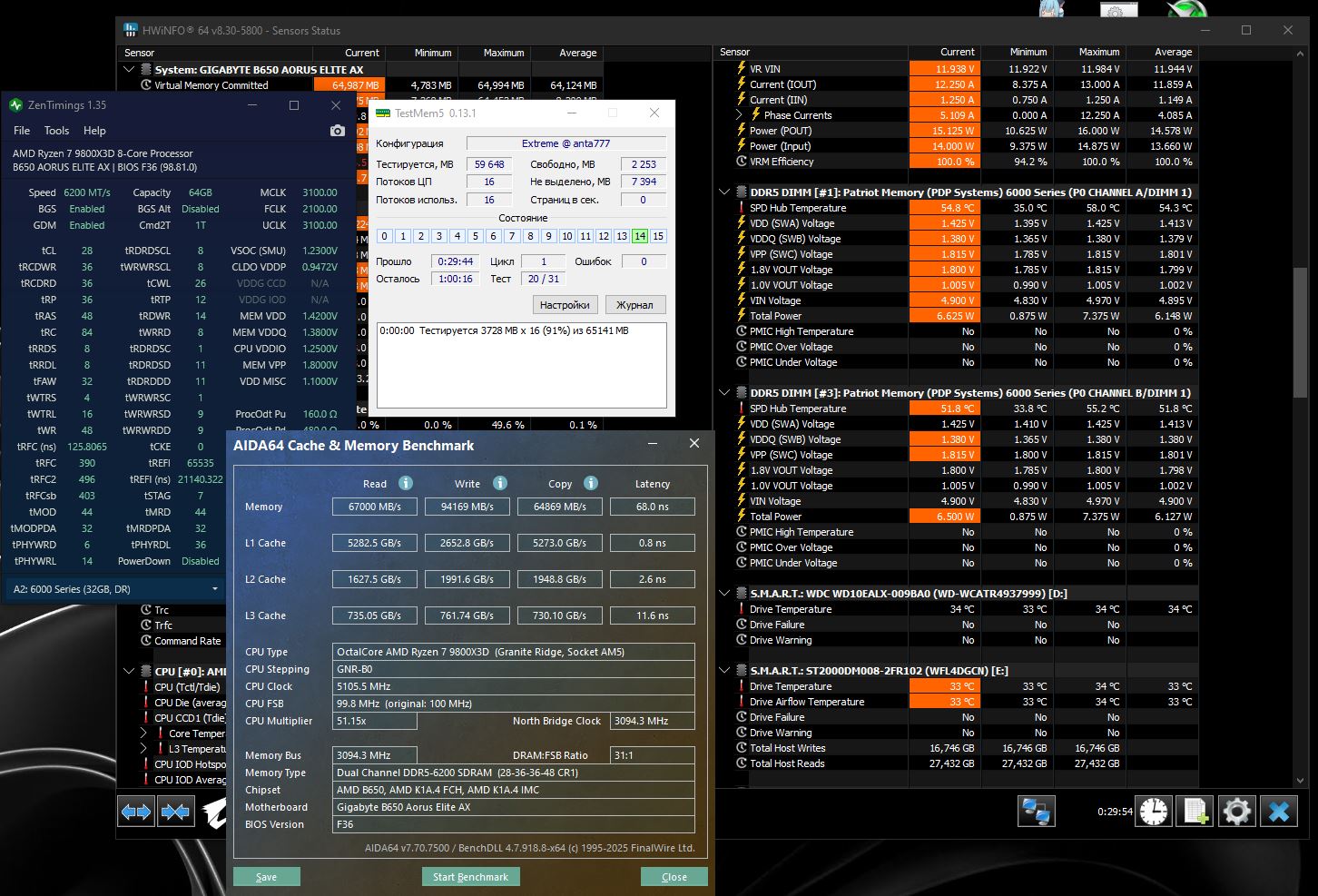 Взял MB Asus ROG Strix B850-A Gaming Wifi RAM F5-6000J3040G32GX2-RM5RW CPU Ryzen 7 9800X3D
