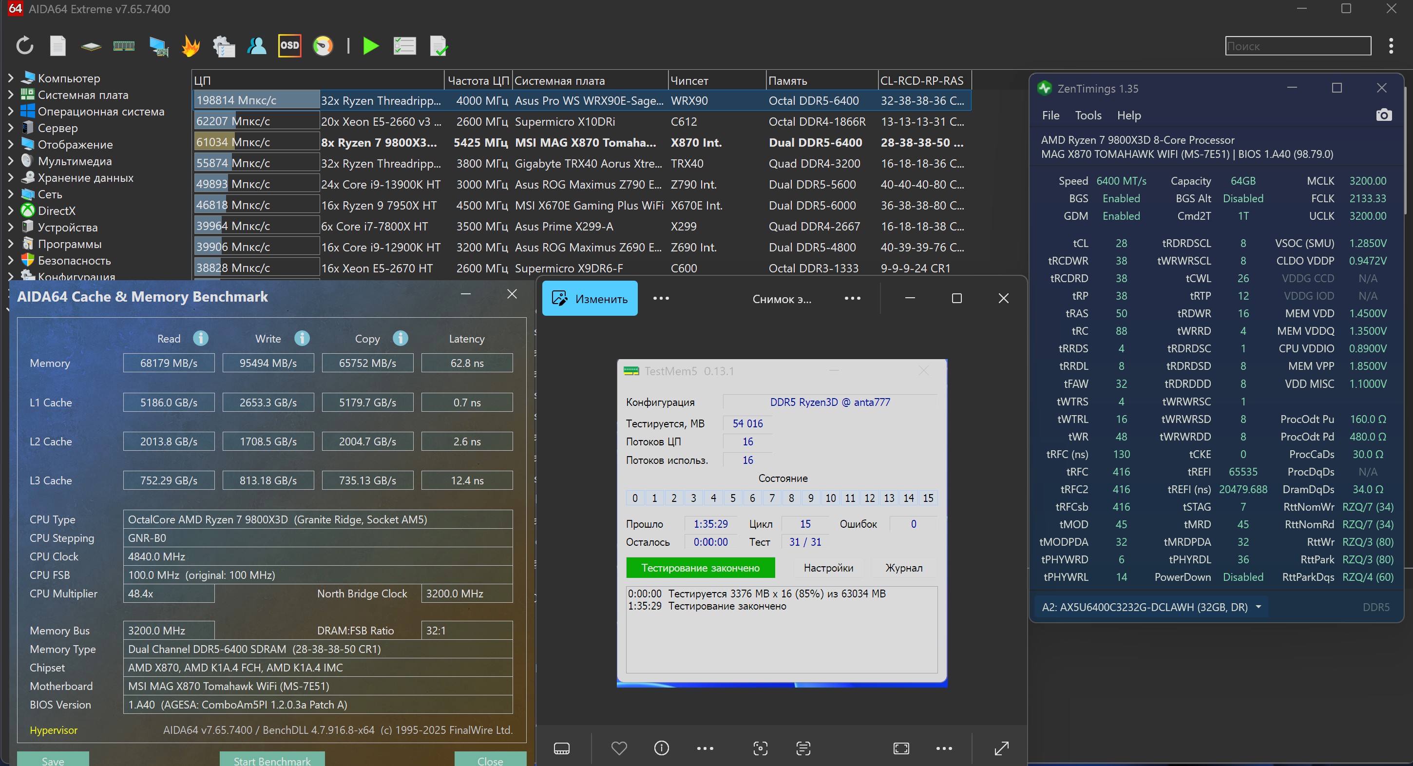 Hanzo4999 Выше мой скрин на 6400мгц ,поставь 6200 и тестирую ,потом подожмешь некоторые тайминги Web Tom На зентайминге все что надо есть ,остальное мать сама ставит