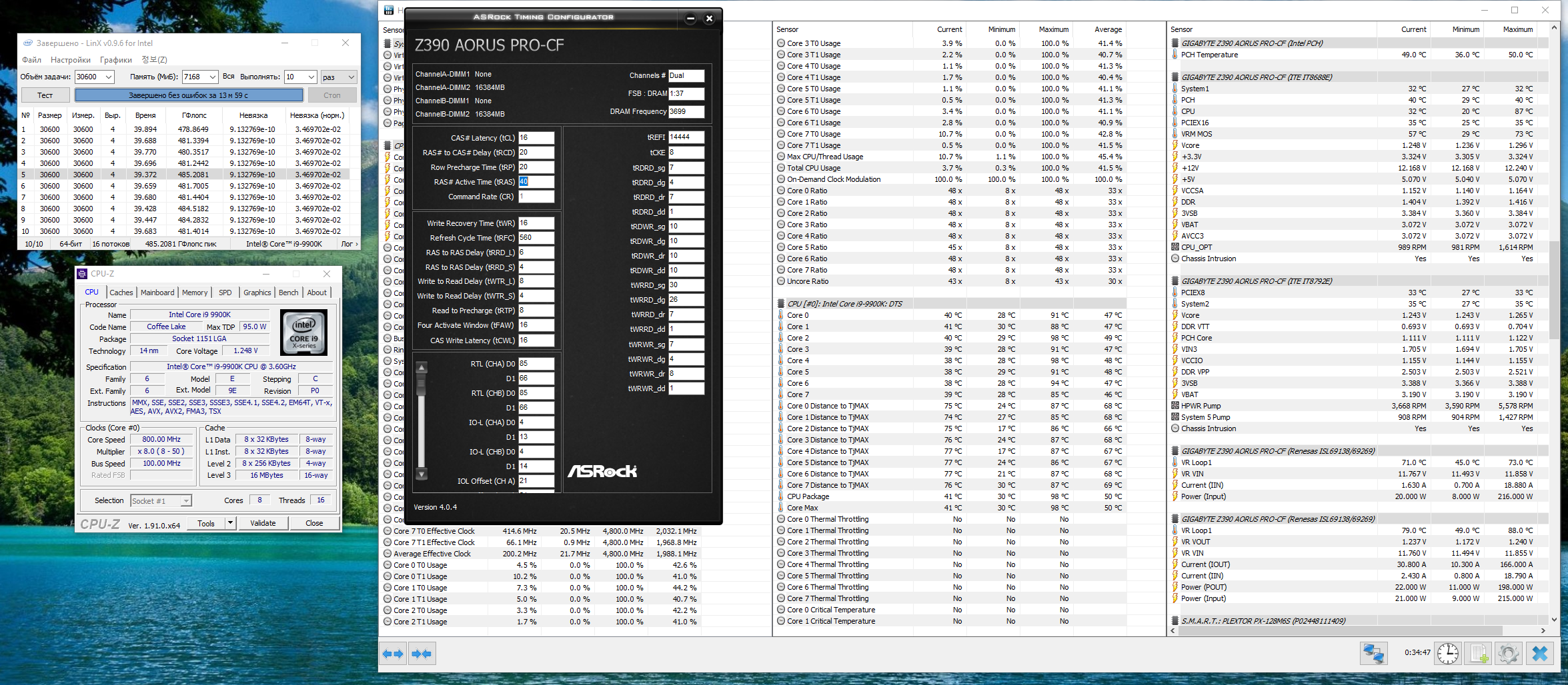 Cinema4d, мемтест или тестмем5? если второй, то с каким пресетом? экстрим? Для прохождения линкс 0.9.5 (Прямая ссылка) на 9600k я бы рекомендовал 1.28В напряжения на ЦП и 4700 частоту ядер/4400 частоту кэша. Если всё ок и нет невязок при задаче 30000 иил 40000 - повышать частоту до 4800 и кэш до 4500 и снова гонять. Если система охлаждения спокойно справляется, можно повысить напряжение до 1.36-1.38В.