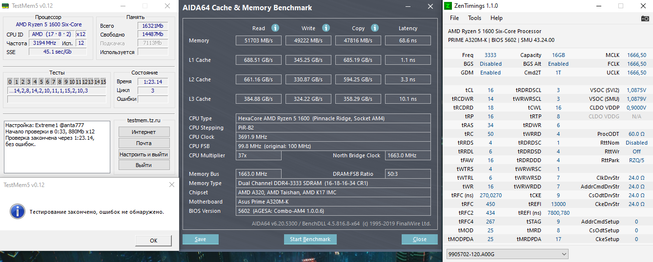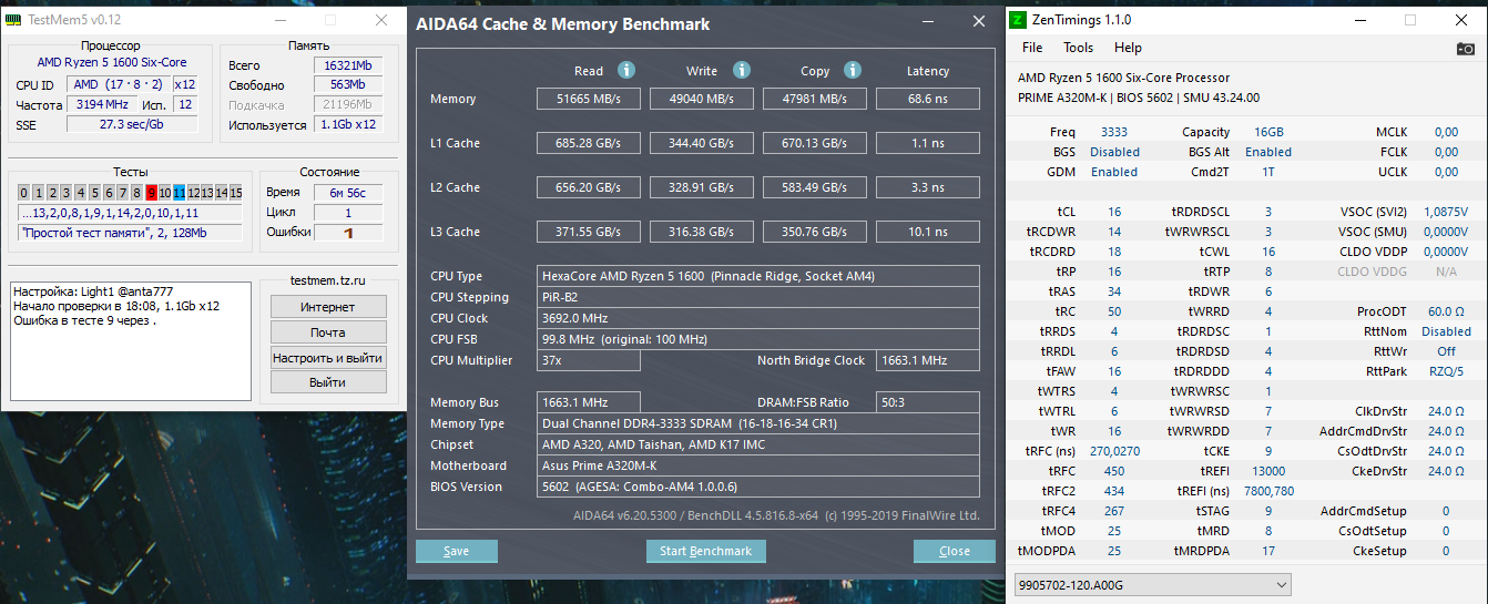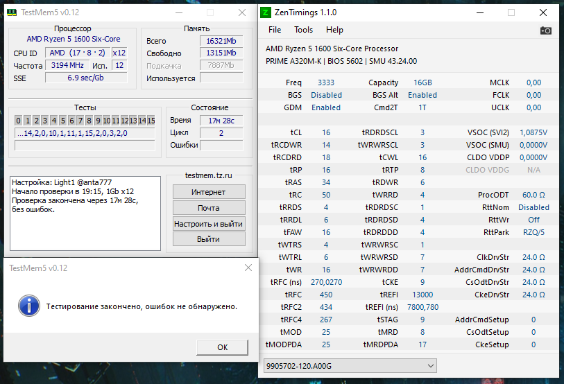 7 2 1 это и было rtt в авто. По ZenTimings (скрин выше) видно. Но они проблемные. Сменил на 7 0 5. Можно снизить 14 14 14 до 14 13 13 / tCL-tRCDRD-tRP, только какой в этом практический смысл-неясно. В аиде, фотоворкс, мембенч калька разницы нет.