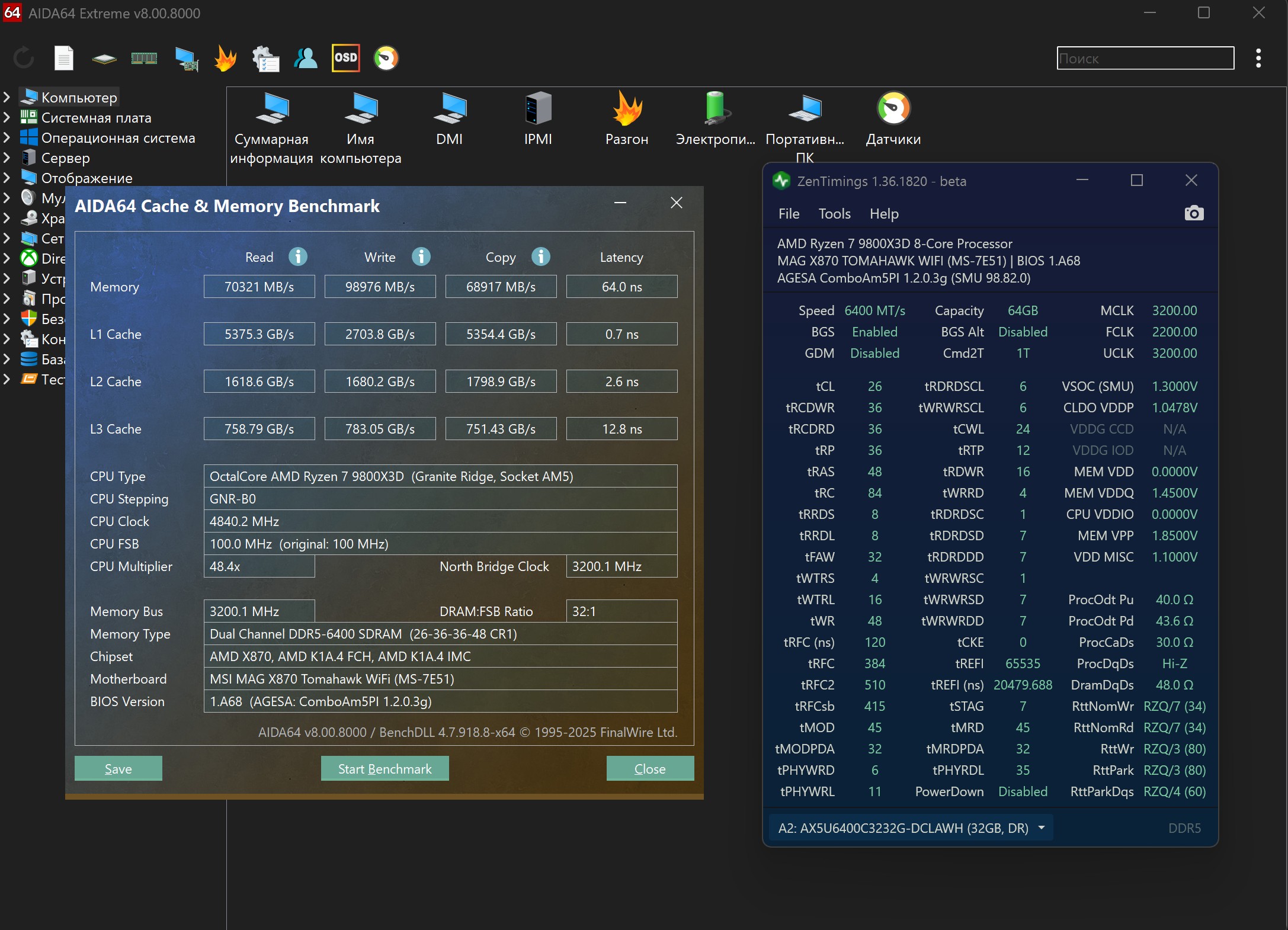 перешел с 6000CL28 на 6400CL30 - биос помог обновление, до этого не стартовало, а потом ради интереса на 8000CL38 и в играх хорайзен и лара в неигровых разрешениях получил +, типа 394 в ларе против 415, и это при детском соке 0,9 в жопку все эти 6400 на 1,3 после такого, жду зен 6 и память овер 10к )))