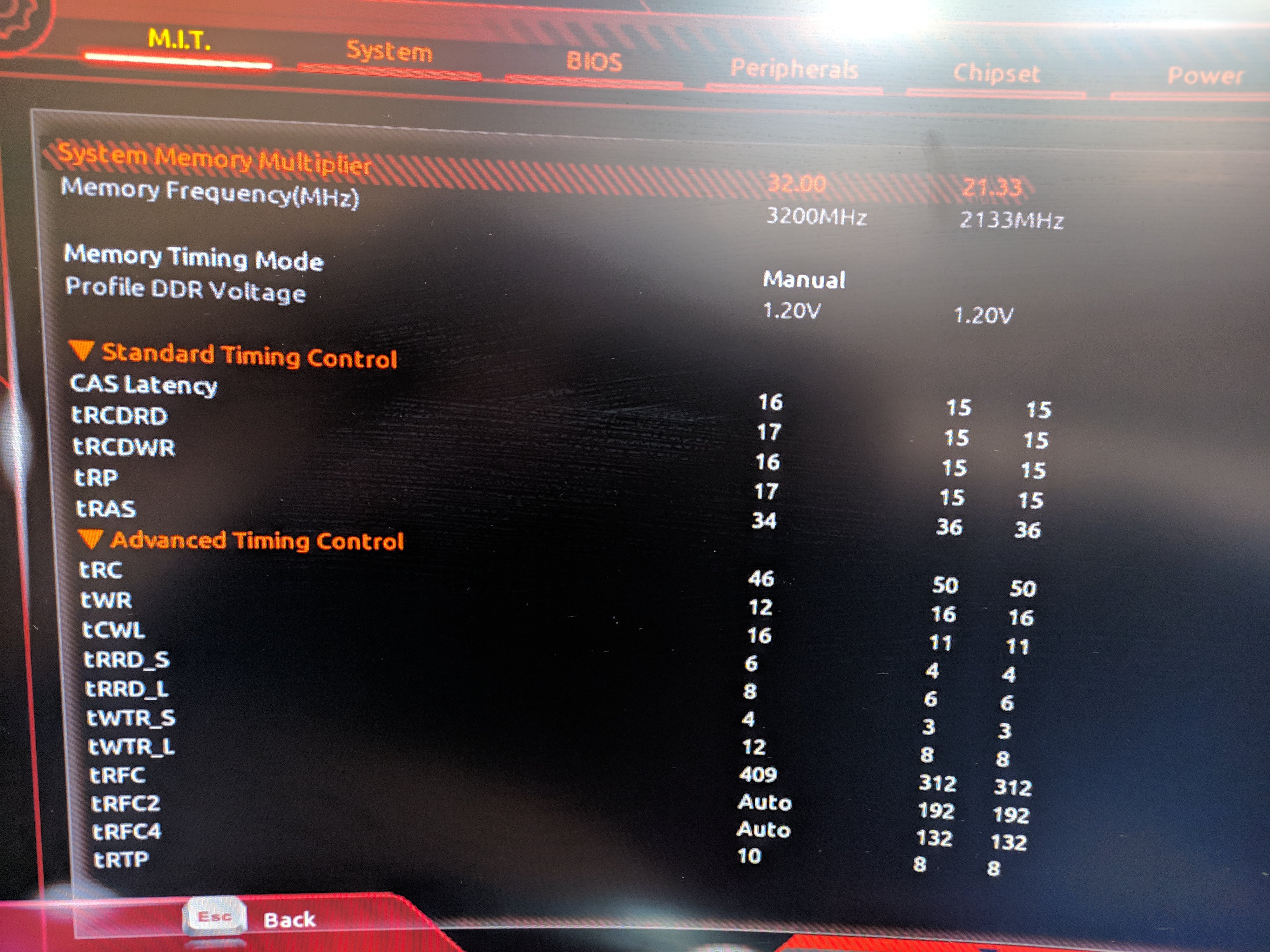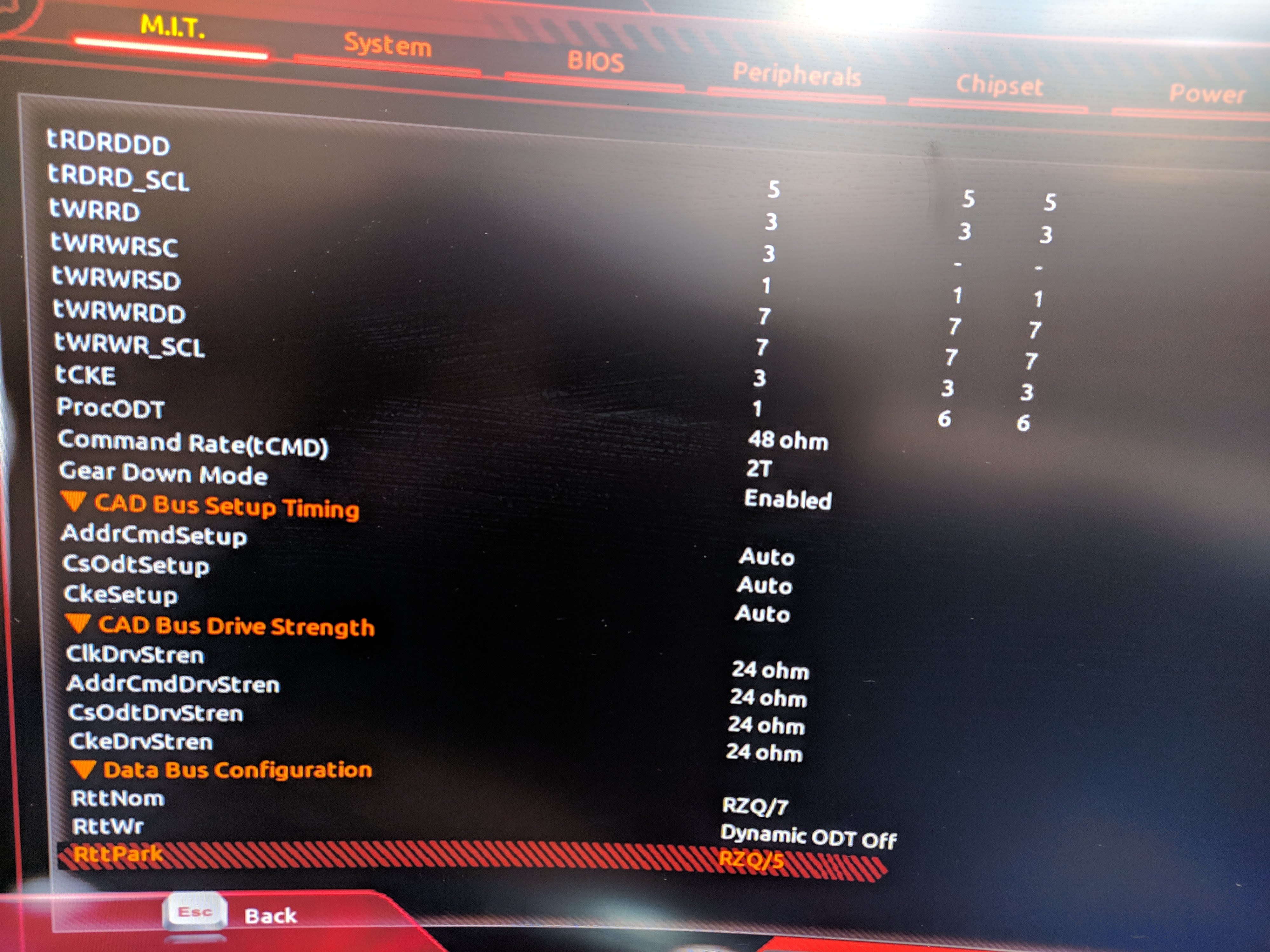 Не можете подсказать какие тайминги увеличить, ошибки в тм5 usmus1 в тестах 8, 0, 4, 13? Или все по очереди пробовать? При напряжении 1.45 нормально, но напряжение выставляю 1.45 и оно показывает в простое 1.472 в биосе, и под тм5 тоже 1.472 в hwi, какой бы llc я не ставил. Материнка MSI X470 Gaming Pro Max. Память новые баллистики 2х8 3600 cl16, micron e-die.