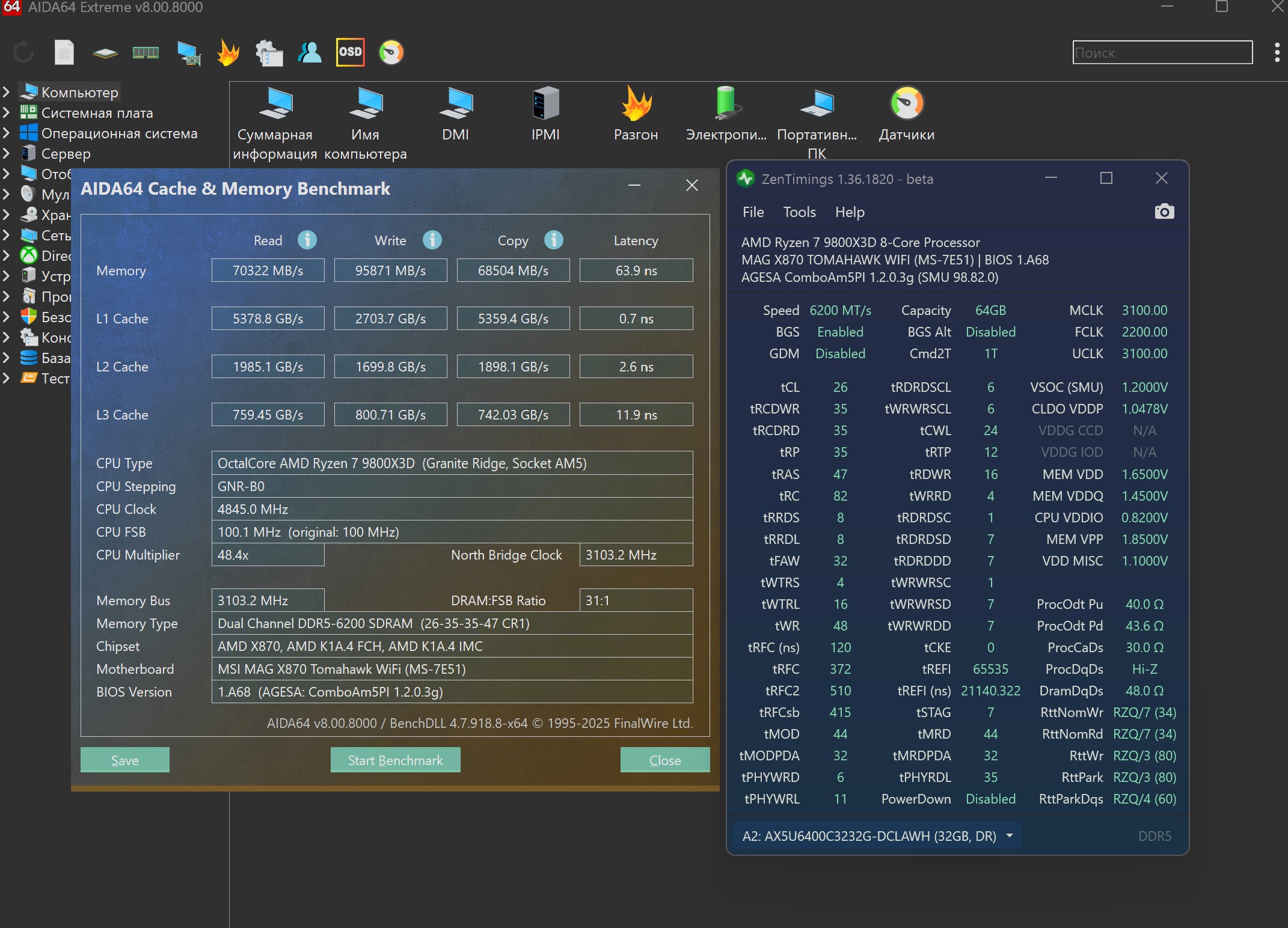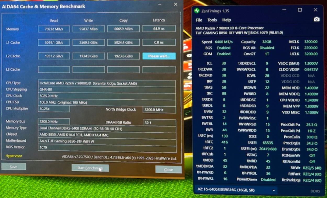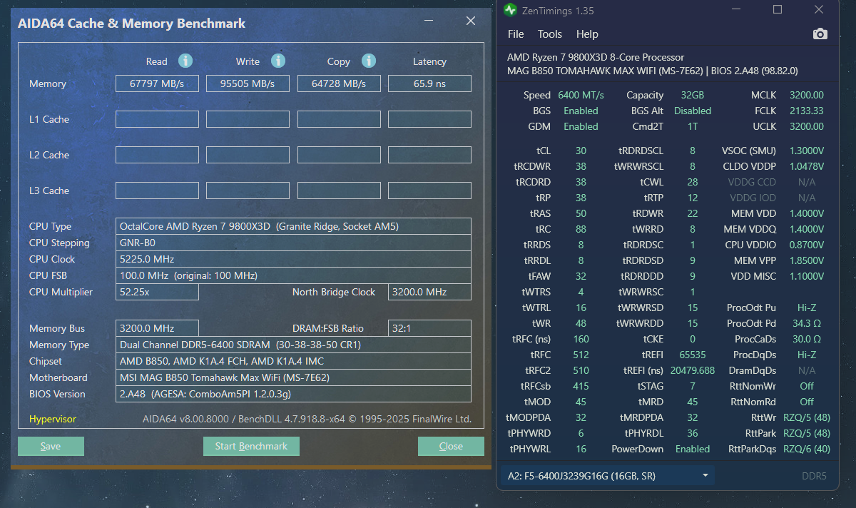 Подскажите, в чем может быть причина высокой задержки? Я выставил тайминги также как и гайде от i2hard, отличие только у них tRFC 412, у меня 512 при 6400, но у них задержка 55, а у меня 65. Так же в гайде техно-грааля выставил тоже все идентично, только наоборот tRFC у него 512, а у меня 480 при 6200, но у него задержка 60, а у меня 66. Это аида чудит или что за приколы? Притом что меняя tRFC 480 на 512 разницы нет в районе 1мс, так что явно не в нем дело.