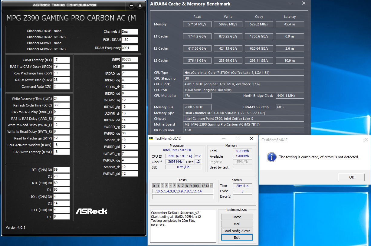 Ковырял потом весь вечер 3733, пока безрезультатно. Самое лучшее чего смог добиться - примерно первые 2-3 минуты теста без ошибок, дальше начинают лететь. Во время всех тестов на оперативу повесил 120мм вертушку, ошибки из-за перегрева исключены. 3800 кстати заводится, но там со стабильностью совсем всё плохо))