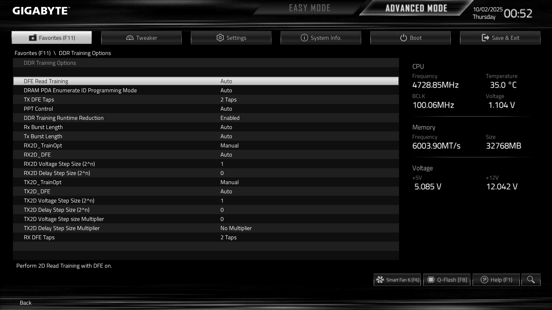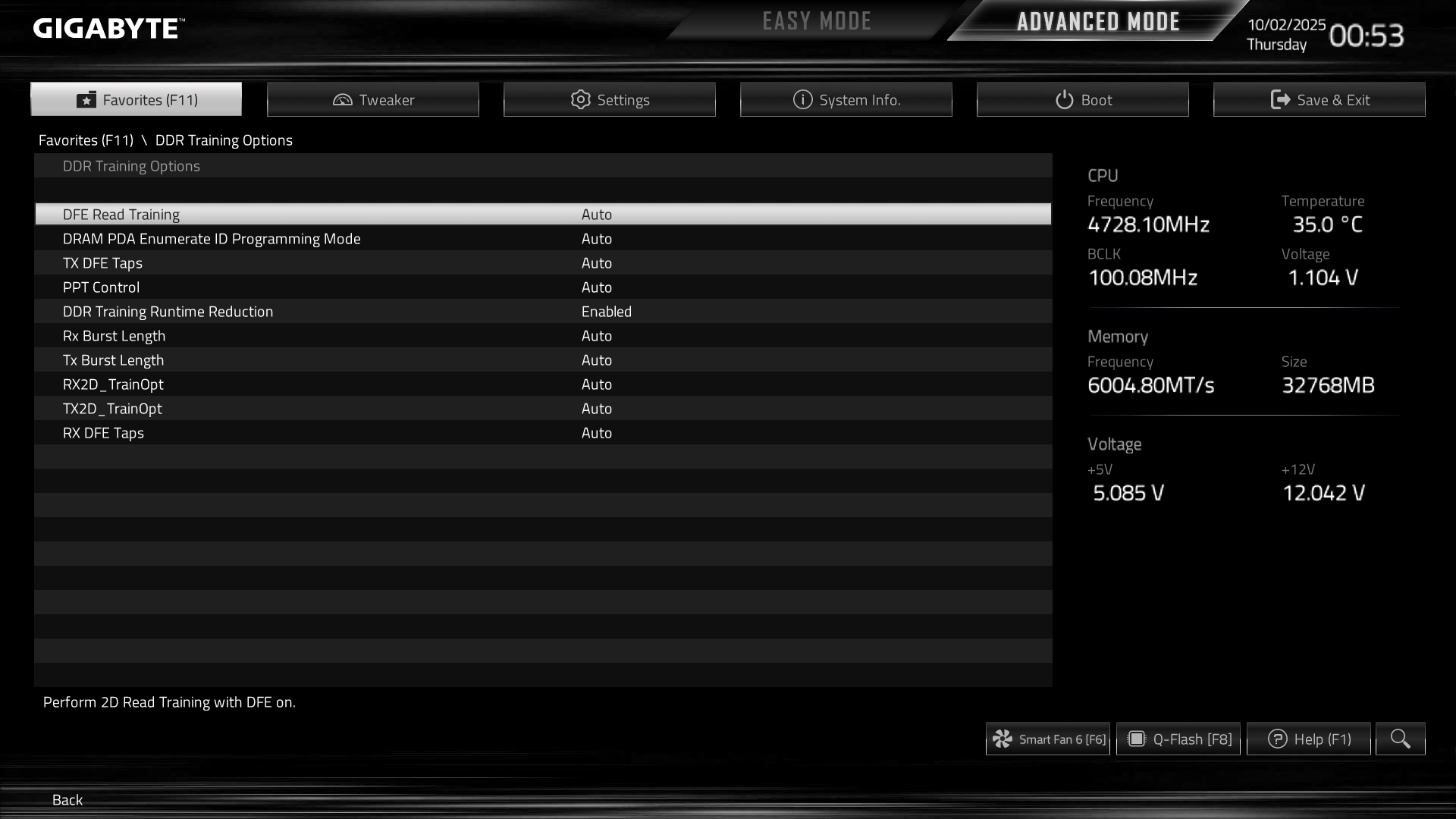 Отталкиваясь от вашего поста аж 2023 года, где Вы пишите, что при настройке DFE отключить, а после нее включить, мне необходимо все перевести обратно в auto (как на первом скрине) или более того в disabled. Далее настроить память, провести тесты, подобрать напряжения с коэф-м 0.94 в соответствии с формулами из шапки а после включить? На что предпочтительней включить 1 taps, 2 taps, 3 taps, 4 taps?
