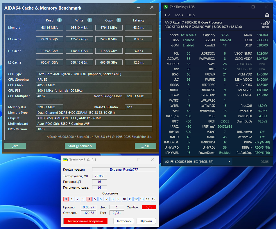 Доехала моя память Trident Z Royal 6000 cl26 2x16Gb из США. Результаты в expo не впечатляют)
