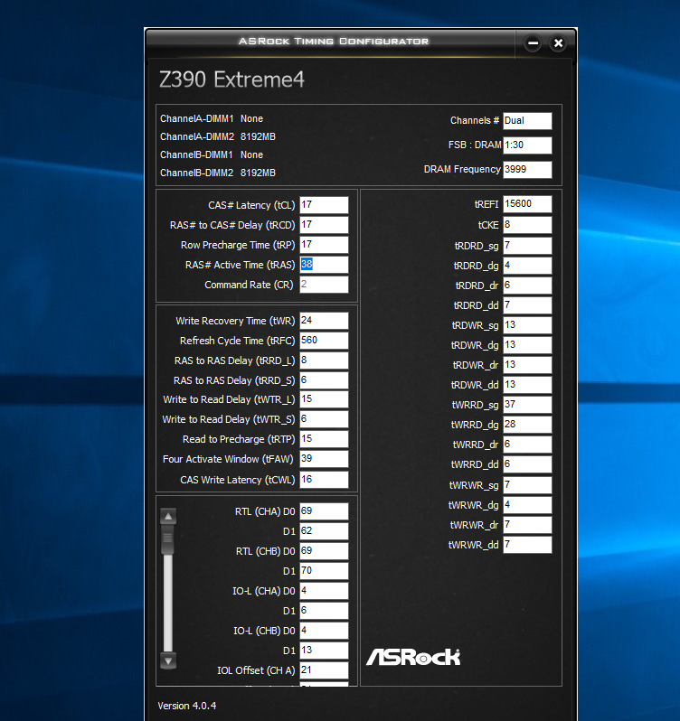 Начните с RCD, CL. Не обязательно должны быть одинаковыми, обычно CL идёт меньше чем RCD. RAS сразу пробуйте как RCD+CL+4, до этого значения от него существенная разница, дальше меньше. CWL<=CL. Допустимые значения 9,10,11,12,14,16,18,20. RP можете выставить по RCD, если пойдёт меньше - тоже неплохо, не уверен правда насчёт смысла. RTP без формул. Если не идёт вниз можно попробовать поднять чуть чуть RP. В DDR4 явно связан с WR соотношением 2 к 1 (например WR20\RTP10), физически хранится одно значения и в зависимости от операции интерпретируется. Скрутите FAW до 16(так и оставьте если работает). С таким FAW скручивайте RRD(оба, L обычно больше чем S), возможно поедут на 4 оба. Если до 4 не удалось спустить поднимите FAW до уровня RRDL*4 и попробуйте ещё, хотя это скорее всего уже почти предел. Обычно L>=S. L - SG(Same Group). S - DG(Different Group) Напр. RRD_L>=RRD_S. CKE=5 СCDL>=4 RDRD_DD и прочие подобные можно проигнорировать если у вас нет двух планок на один канал (4 планки). DD-Different Dimm. Тоже самое с DR-Different Rank если у вас одноранговая память. RDWR_SG(DG) и подобные сочетания скручивайте до минимальных рабочих, потом накиньте сверху +2. Как уже отметил обычно SG>=DG. WTR не трогайте он сам спустится когда будете скидывать WRRD_SG(DG) и прочие подобные. Если сам меньше не стал тогда руками скидывать. WR снижать через WRPRE если есть. Если нет или не снижает WR, То скрутите его скажем до 12 или +4 от рабочего, потом дожмёте если не лень будет. RFC явных формул нет, крутить после всего списка сверху. Не пытайтесь найти его минимальное значение если не хотите чтобы память начинала сыпать ошибками от любого чиха. найдите пограничное со стабильностью значение и накиньте сверху 20 или сразу 40. Может реагировать на RAS+RP, RRD, FAW, причём в обе стороны (то есть может "сломаться" если задрать названные), а может и не реагировать... REFi больше лучше. Связан с RFC. REFI сколько память "работает" - RFC сколько "отдыхает". Оба тайминга лучше не пытаться найти предельное значение.Заметно реагируют на температуру. Многие тайминги отзываются и на температуру и на напряжение. Поскольку напряжение может как позволить снизить тайминг, так и увеличить температуру, то середину можно искать очень долго, поэтому лучше бы вовремя остановится. Тестируйте тщательно с перезагрузками, сном, холодным стартом. RTL и IOL вам кто-то другой пусть советует как настраивать, от них у меня голова болеть начинает...