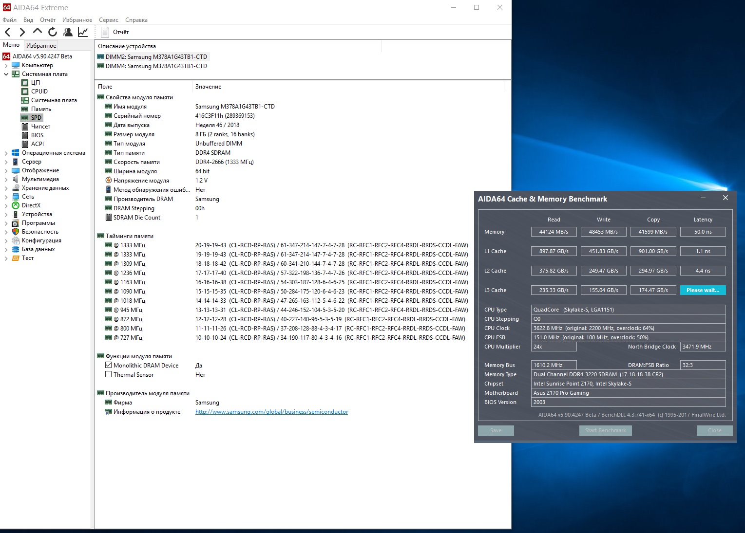 Частота и тайминги Основные показатели скорости памяти. Чем выше частота памяти, тем лучше. Однако гнаться за частотой во вред таймингам не имеет смысла (и наоборот). Выбор частоты на DDR4 возможен от 2133 до 5333 Мгц. Частоты выше 4400 Мгц доступны как правило только на определённых оверклокерских платах и с отборными модулями (а также с хорошим контроллер памяти процессора, который сможет подобное). Хорошей частотой в разгоне является 4000-4400 CL17 и ниже, выше уже могут выше только отборные модули. Для платформы AM4 частота оперативной памяти особенно важна, т.к. к ней привязана внутренняя шина передачи данных Infinity Fabric (работающая на половине частоты оперативной памяти). Дело в том, что эти многоядерные процессоры состоят из двух модулей по несколько ядер, которые взаимодействуют между собой через шину под названием Infinity Fabric – а она тем эффективнее, чем быстрее у вас ОЗУ. Частота влияет в первую очередь, но это не единственный фактор. В связи с этим очень желательны модули, которые в разгоне могут достичь хотя бы частоты 3200, при этом частота Infinity Fabric будет уже вполне удовлетворять потребности процессора. Частоты выше также растят производительность, но требуют бОльшие вольтажи, лучших материнских плат и отбора памяти. Прирост от 3200CL14 -> 3466CL14 есть, но как правило настолько затратный по времени, что не покрывает затрат на его достижение. Хотя сейчас, ситуация лучше и уже многие Hynix\Micron могут взять 3200\3333 на AM4, B-die уверенно работает на 3600-3800. Одинаковая память на более низких таймингах (при одной частоте) будет эффективнее. Т.е. 3200 CL14 > 3200 CL16, как пример. При правильной настройке вторичных и третичных таймингов, можно «добрать» еще до 45% производительности в синтетике и до 25% в играх. Таблицу задержек в наносекундах можно посмотреть тут.