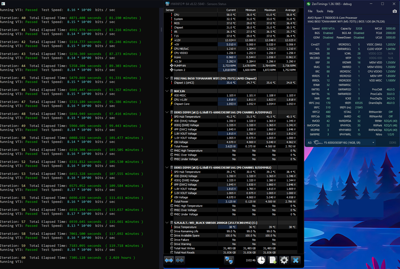 Нужен ваш совет. Все вольтажи кроме VDD, VDDQ, VDDIO работают в стоке. Присутствуют ли ошибки или слишком пережатые тайминги в данной конфигурации? или что-то еще лучше скорректировать. на ЦП отключен второй CCD проверку через TM5 extreme и memtest86 в uefi все проходит.