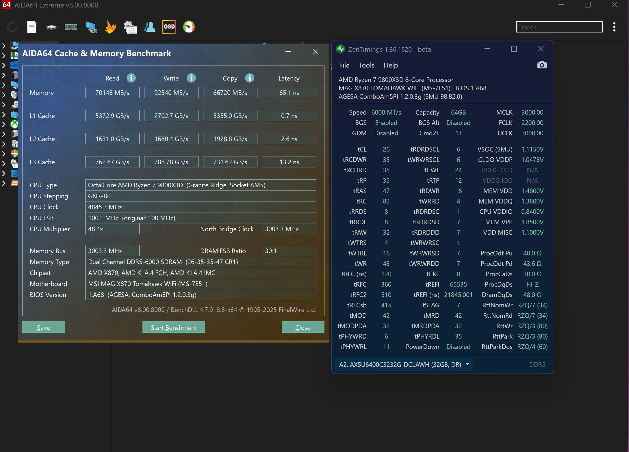 На сегодня примерно такой результат, решил остановится на 6000мгц. От 6200мгц решил отказаться, так как эта частота требует сильнее задирать вольтажи.