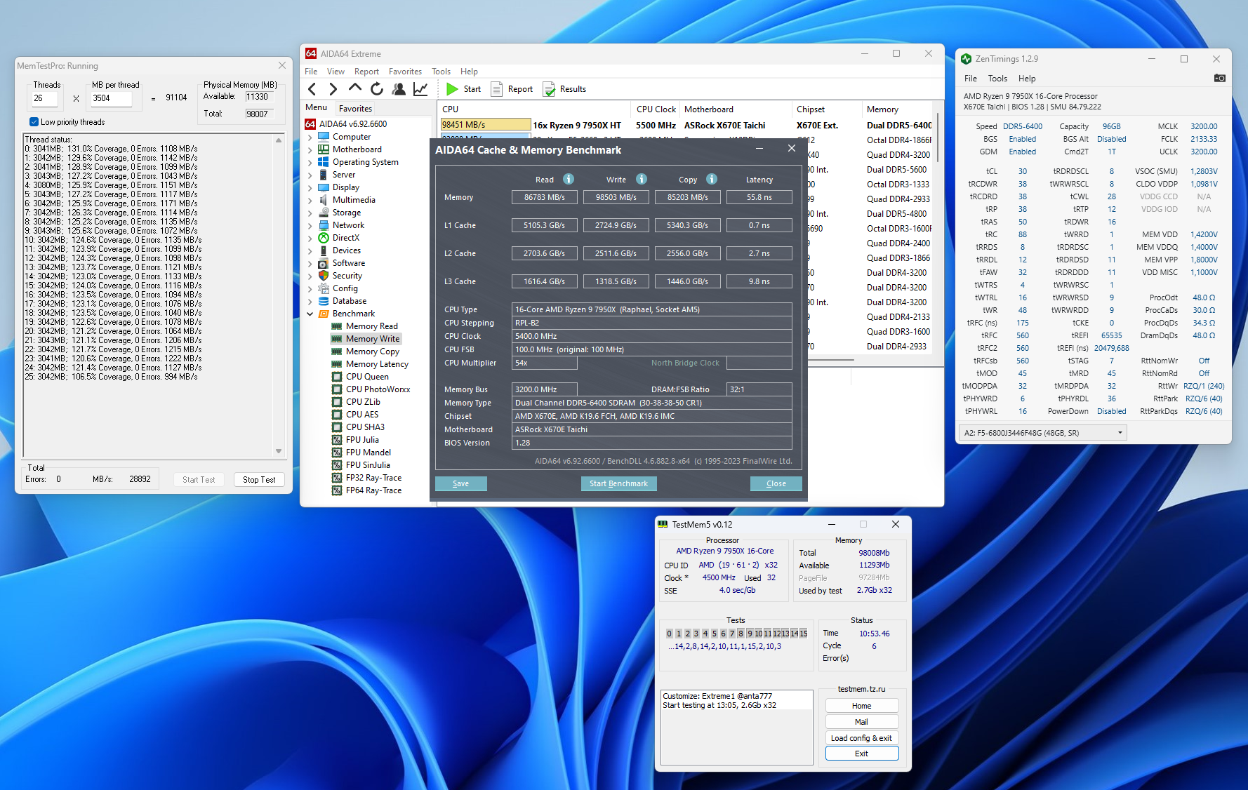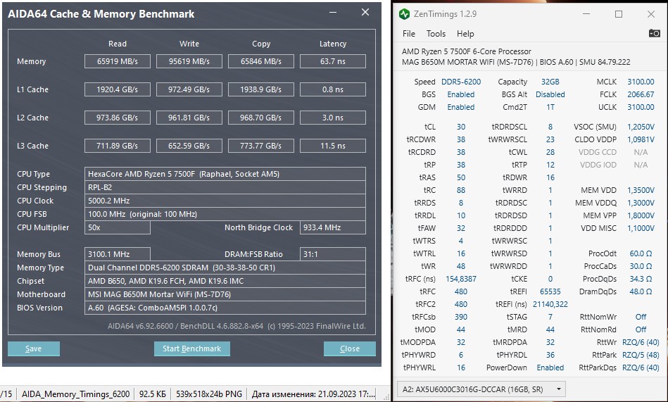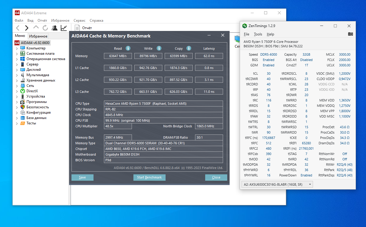 Вот, в тему минимальной настройки памяти, а не банальные XMP\EXPO Пришел мой 7500f, взял плату gigabyte b650m ds3h, память XPG Lancer BLADE RGB 2x16GB 6000 CL30 Собрал, установил винду: