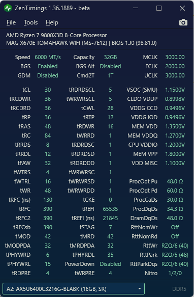 Привет, подскажи почему у меня на той же версии программы не меняется значения soc? Плата и проц те же, память fury beast 6000cl36, ужал до твоих же таймингов чипы a-die. Но почему-то при изменении soc через эту прогу выдает всегда 1.2v, не получается...