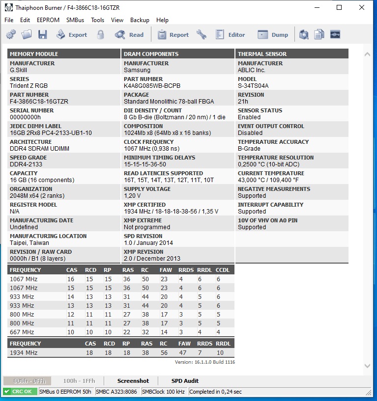[img]Ссылка на скрин[/img] Для сбора статистики по установленным чипам памяти просьба прикладывать скрины программы Taiphoon Burner и указывать напряжения на DIMM, IO и SA![/color]