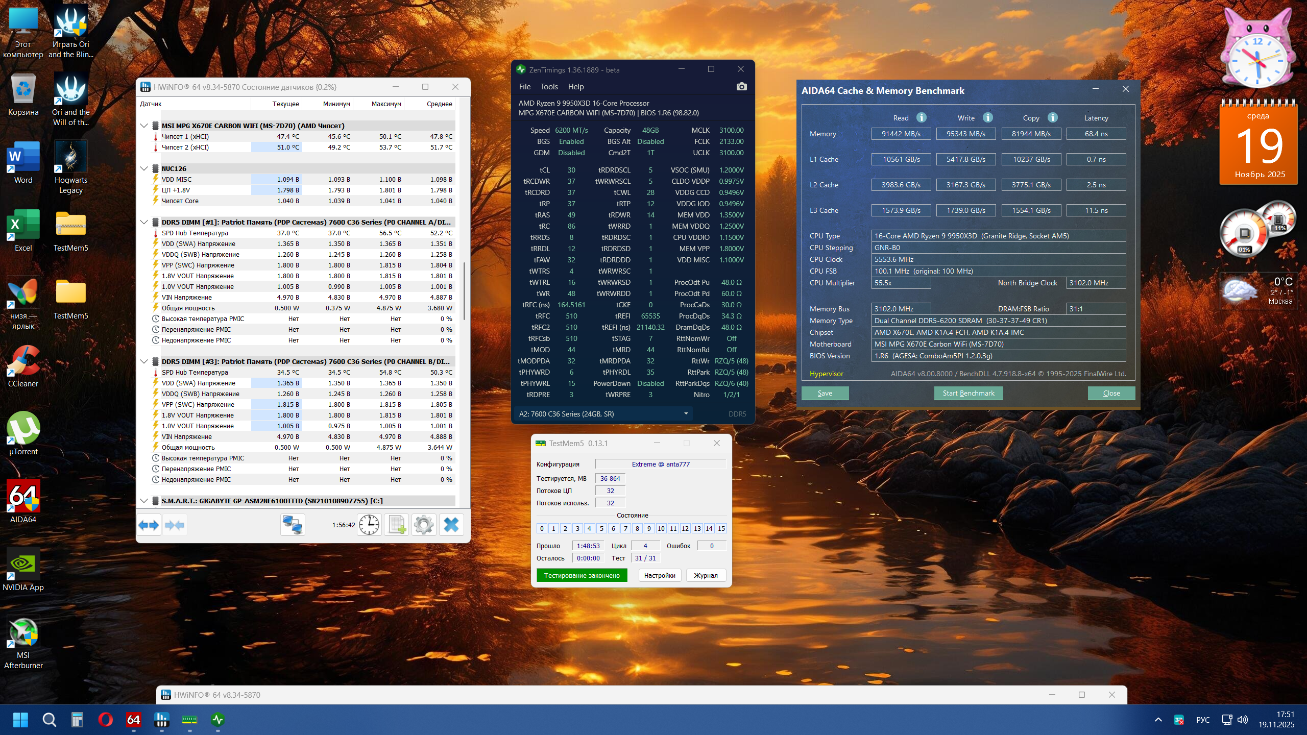 Добрый вечер, давно не обновлял биос материнки, решил протестировать оперативку с последним биосом. Протестировал программой ТМ от Anta777 Extreme раньше всегда использовал ТМ Anta777 Ryzen X3D поскольку у меня процессор X3D.