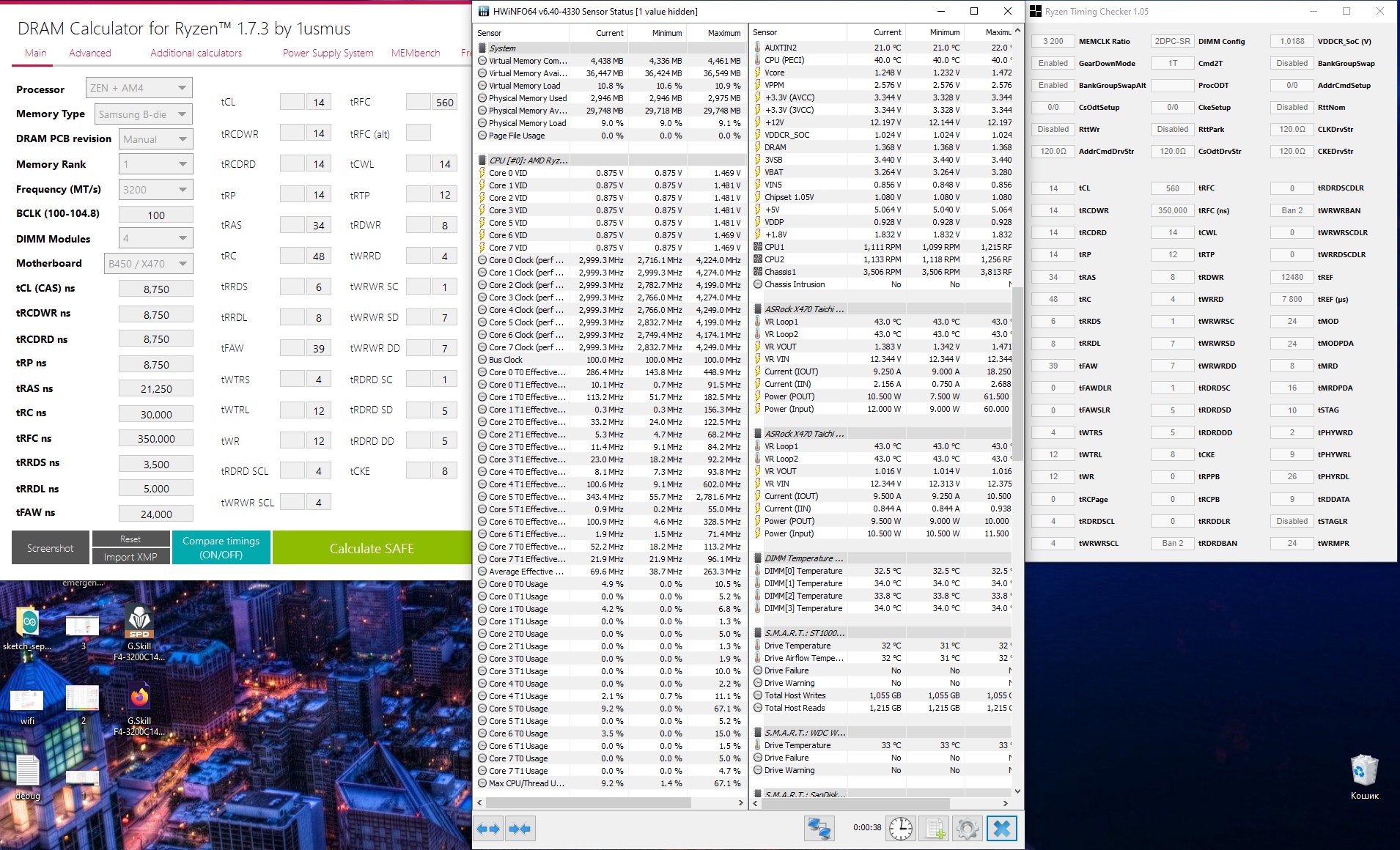 Доброго времени суток. Приобрел 4х8Gb планки Flare X F4-3200C14D-16GFX. (2 планки май 2019, 2 - июнь 2019). МП: x470 taichi bios 3.60 ЦП: 2700х в стоке без разгона. Решил подразогнать чуток, выставил в калькуляторе все по инструкции - система не запускаеться(МП делает тройной старт: 1 - три писка платы, 2 - два писка, 3-один писк, и сбрасывает частоту) Пробовал менять procODT от 43 до 60, Gear Down mode вкл/выкл, SoC Voltage от 1.0125 до 1,075, вольтаж DRAM от 1.36 до 1.45, RTTWR - 3/выкл, сбрасывал частоту до 3466 - все без успешно, ничего не помогает - система не стартует и все. Вот пресеты которые крутил и с которых перепробовал все альтернативные варианты: