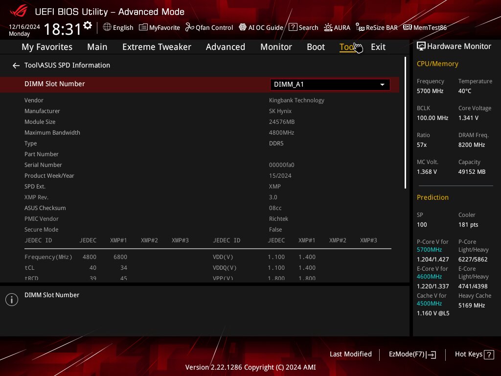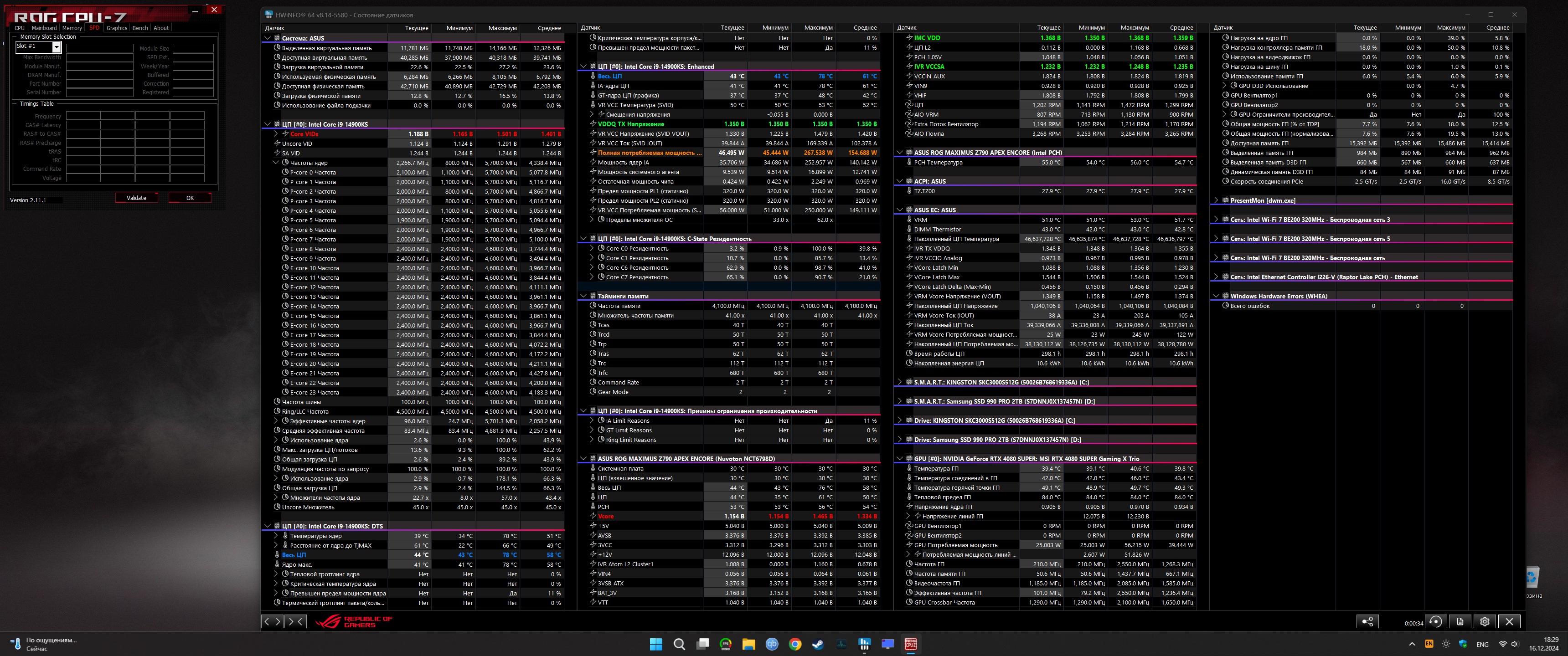 Вернул назад Gskill F5-7800J3646H16GX2-TZ5RK Показания всех датчиков теперь в норме, все работает гуд, бегло настроил 8200 профиль, ТМ5 прошел без ошибок. Кингбанки поставил во второй пк на MSI Carbon с 12400F, и там они на xmp 6800 запустились и работают, показания всех датчиков присутствуют и не пропадает как было на Апексе, сын погонял вечер ПК, раз 20 перезагружали комп, ТМ5 прошел, SPD показывает. Странно короче почему такое поведение у модулей, на одной плате норм, а на второй лаги. В общем я буду пока на Gskill сидеть Подскажите что еще по таймингам можно подкрутить?