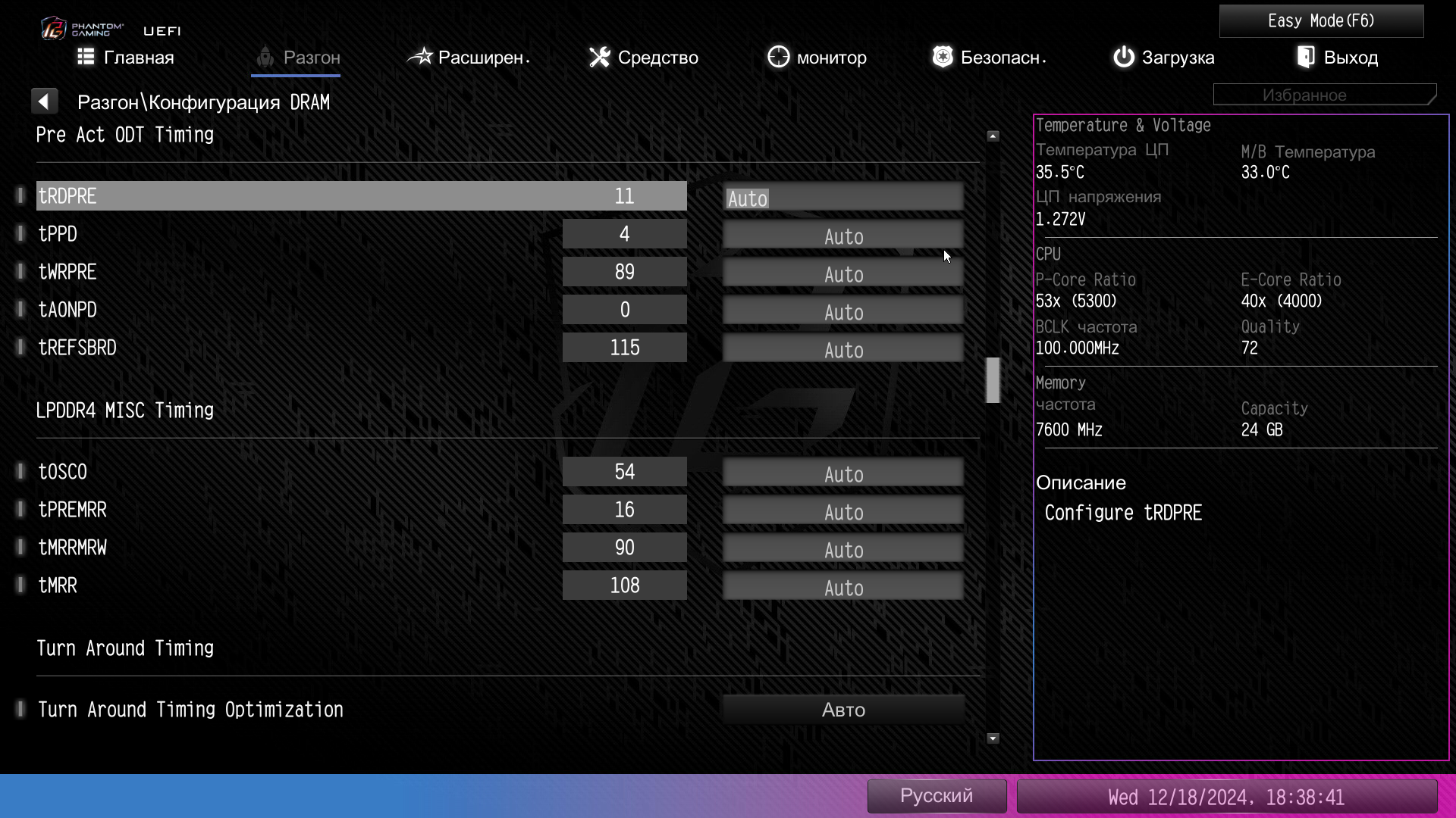 Если прописать его - сыпет ошибками, хотя в авто на 1 меньше и все норм. [tWRPRE=tWR+tCWL+8]; [tRDPDEN=CL+9]; [tWRPDEN=CWL+9+WR]. Это правильные формулы? [tPRPDEN=2] и в авто, а OREFRI у меня нет.