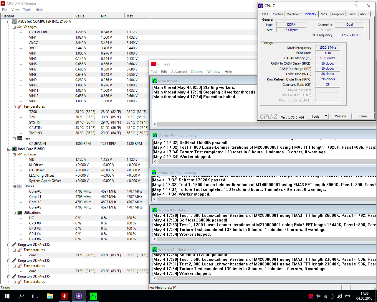 а на следующий день сразу после загрузки винды (!) всё вывалилось в BAD_POOL_HEADER. Вот тебе и "бленд"... Вернулся на "медленные" 2850. Позже повторно попытался работать на 3039, от балды задрав vccsa до 1.2 - через некоторое время получил такой же внезапный бсод PFN_LIST_CORRUPT. Сижу пока на 2850/15-15-15, ничего не вываливается днями даже на 1.312 В (в биосе 1.2936), vccio 1.05, vccsa 1.1. А на 3039 пару раз даже не стартануло с первого раза - биос несколько раз длинно запищал... Не понимаю - не то сама память "не держит" частоту (да и 4 планки всё-таки), не то контроллер, не то напруги не так накрутил, не то побочные тайминги надо как-то по-особому поставить. Может, подробный гайд какой где появился по разгону DDR4 на Z170?