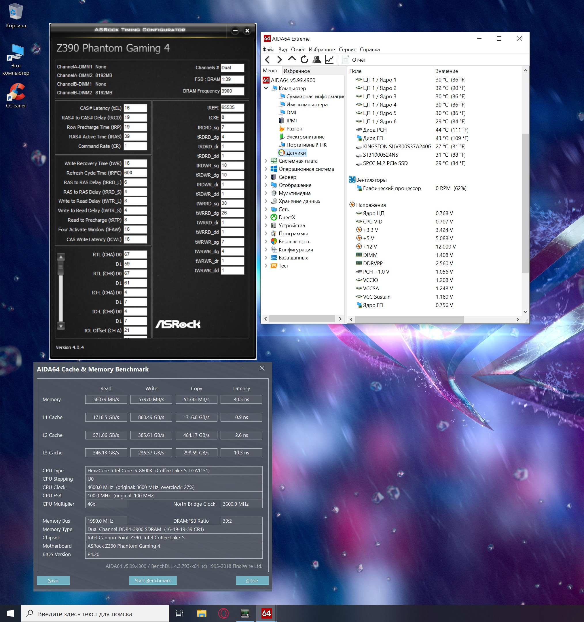 1) tRFC- простой памяти 2) какие у вас чипы памяти? Если круциал баллистик на e-die, то минимальный tRFC=280-288 ns, у совсем плохих - 300 нс. С каким минимальным tRFC еще есть загрузка в биос? 3) с напряжениями для 3900 памяти все отлично, я бы даже немного увеличил напряжение на ио - до 1.215.