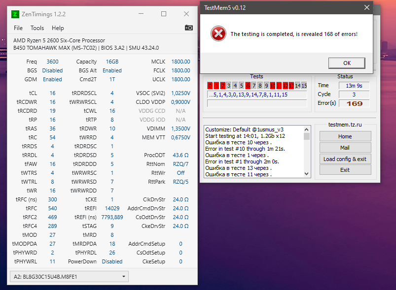 Нда... как только плашки нагреваются начинает сыпать ошибки в тм5, придется рс и рфс накидывать я так понимаю что бы вольтаж уменьшить